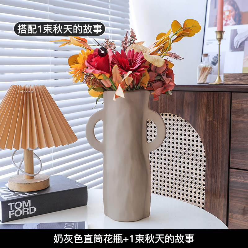 • 밀크 그레이 스트레이트 꽃병 + 가을 이야기 꽃다발 1개