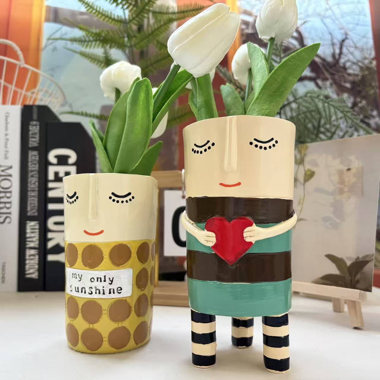 크로스 국경 수지 꽃병 어머니의 날 발렌타인 데이 선물 안뜰 홈 발코니 장식을위한 다육 한 꽃 냄비