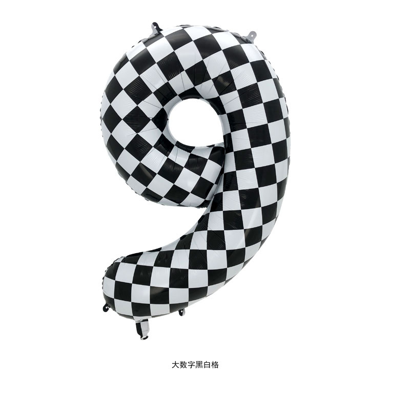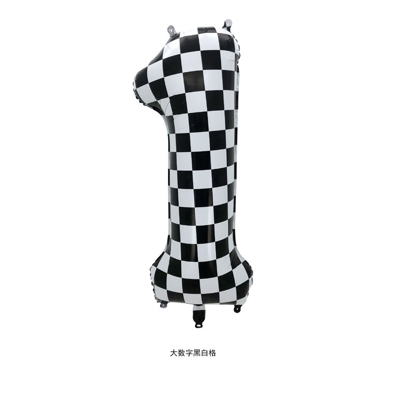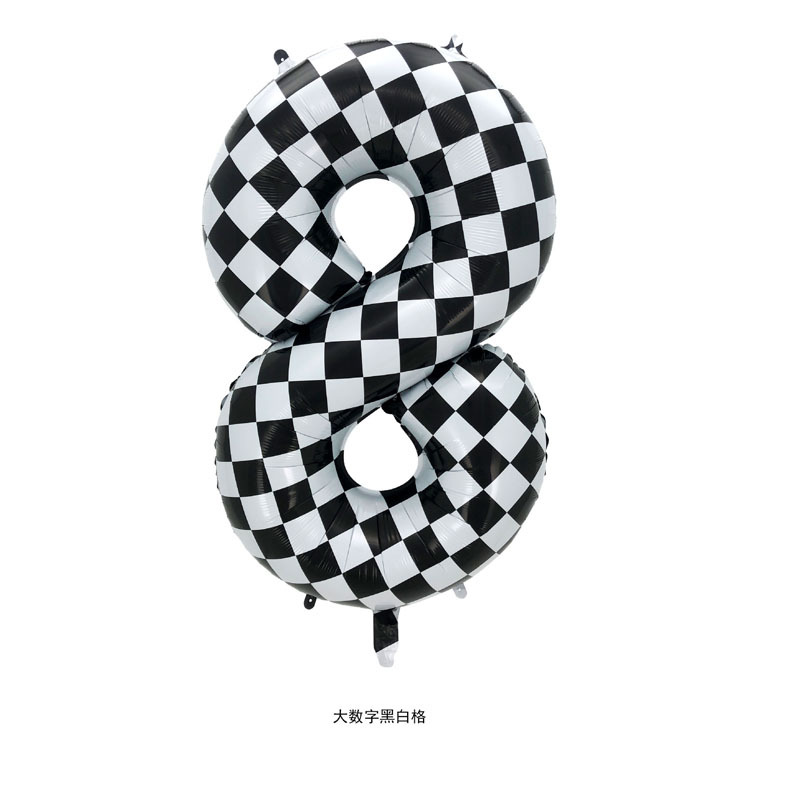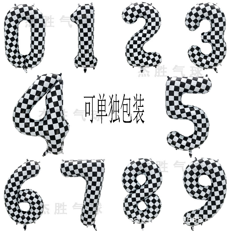 국경 새 40 인치 흑백 격자 무늬 디지털 알루미늄 필름 풍선 생일 파티 장면 레이아웃 알루미늄 호일 풍선스토어 가기