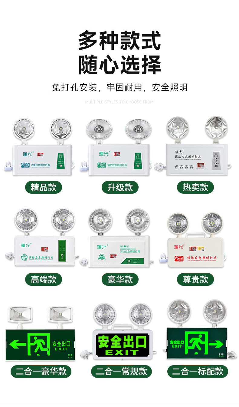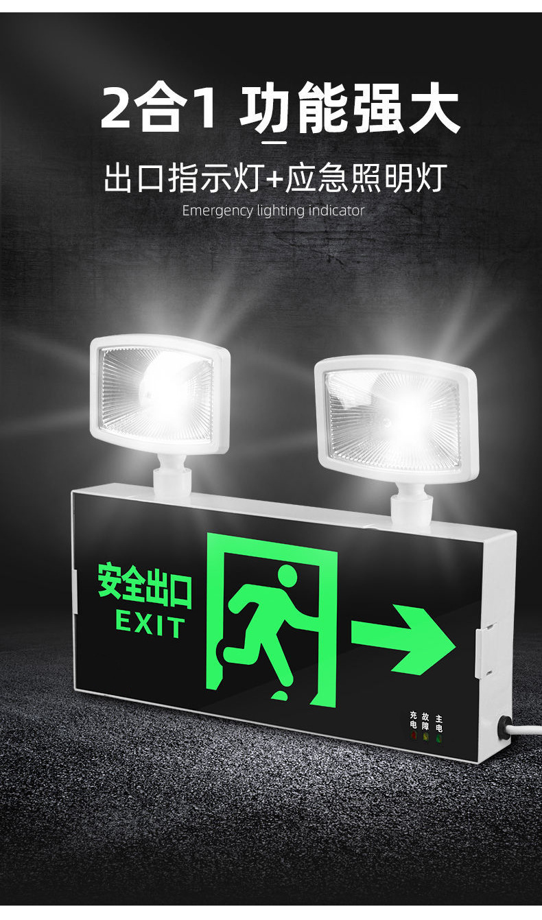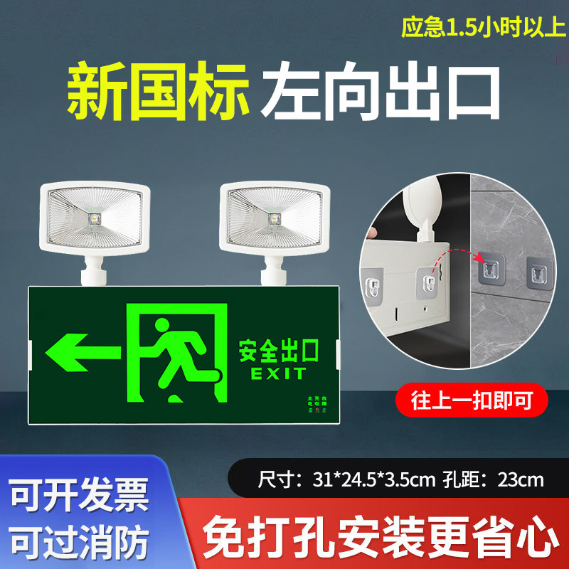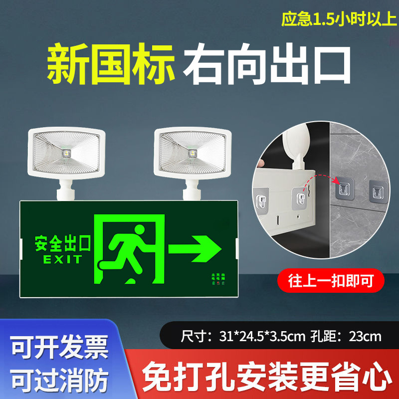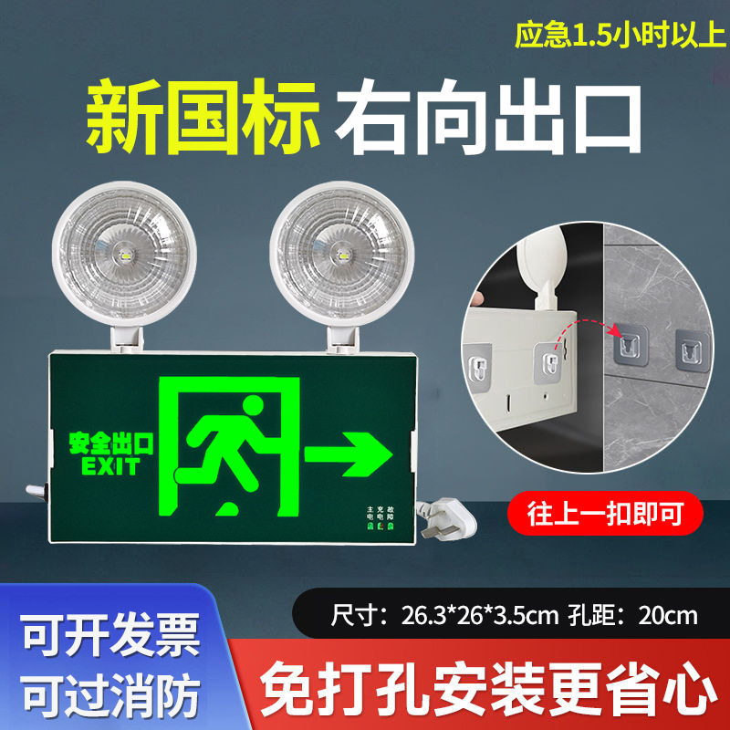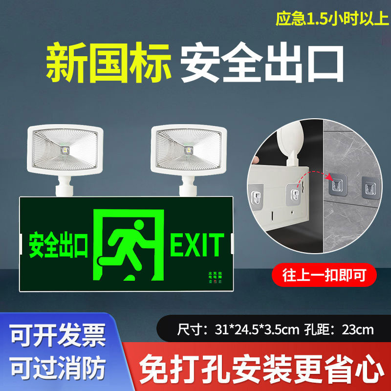 화재 비상 조명 2 대 1 안전 출구 표시판 충전 대피 마커 램프의 펀치 프리 설치스토어 가기