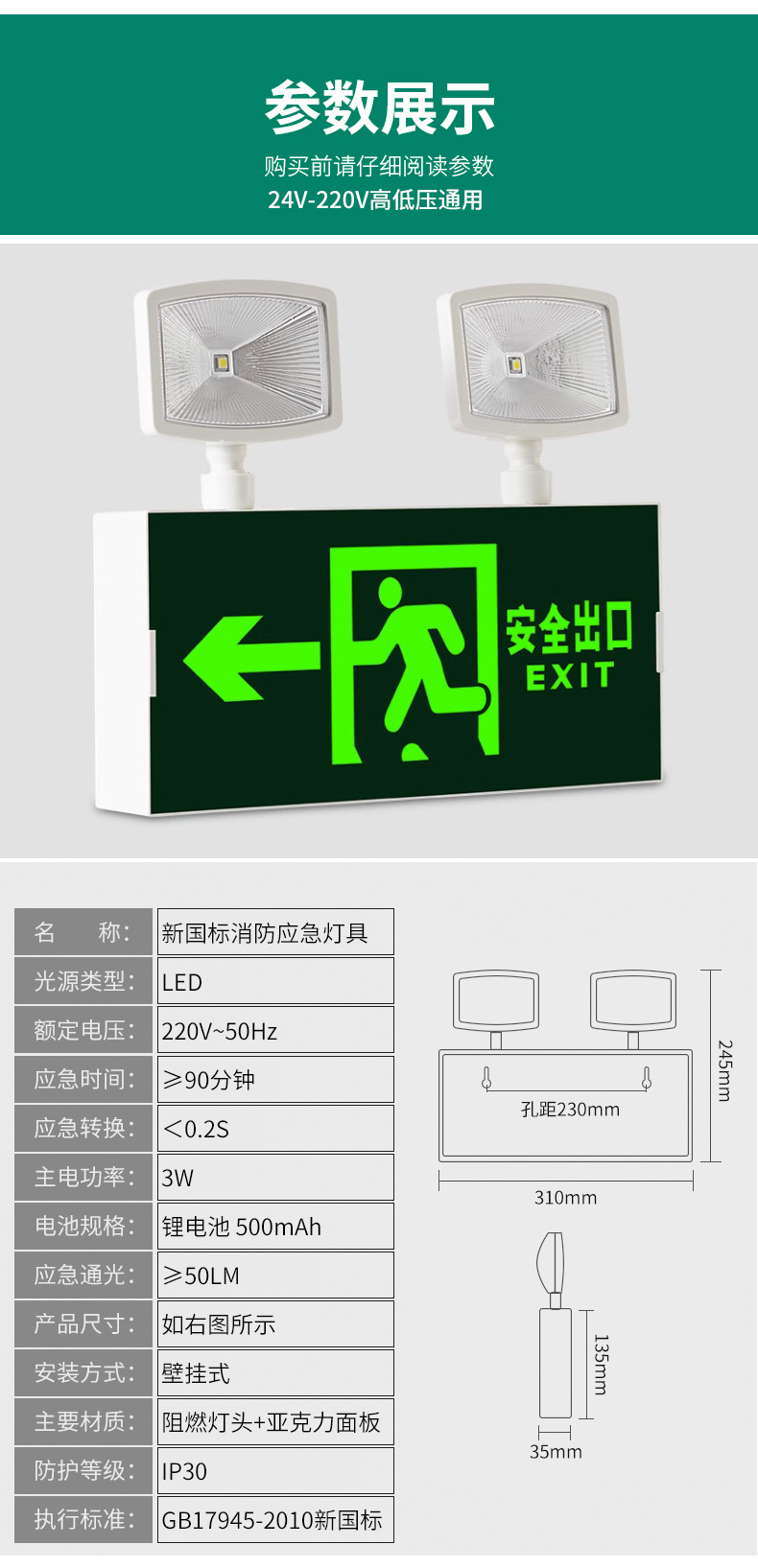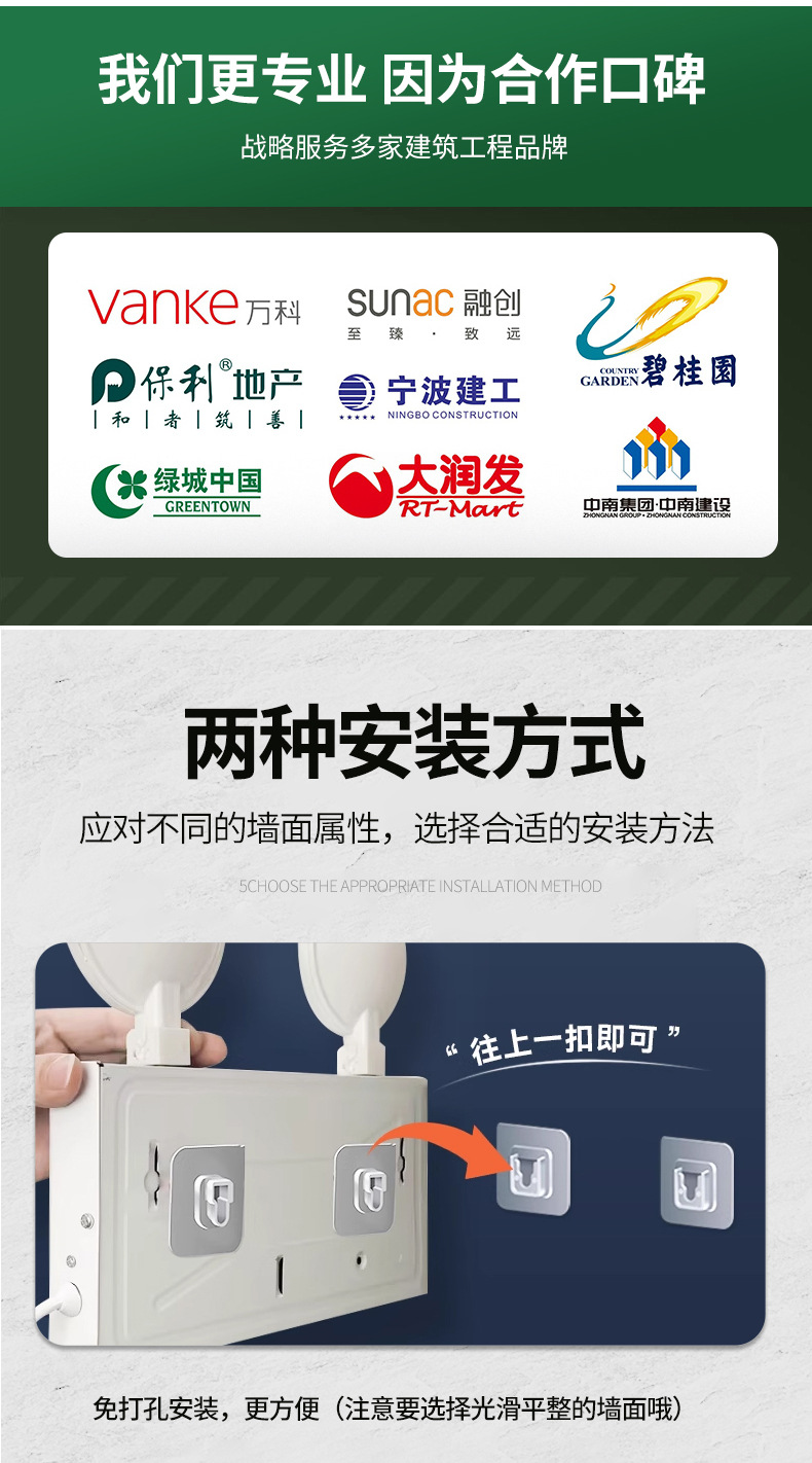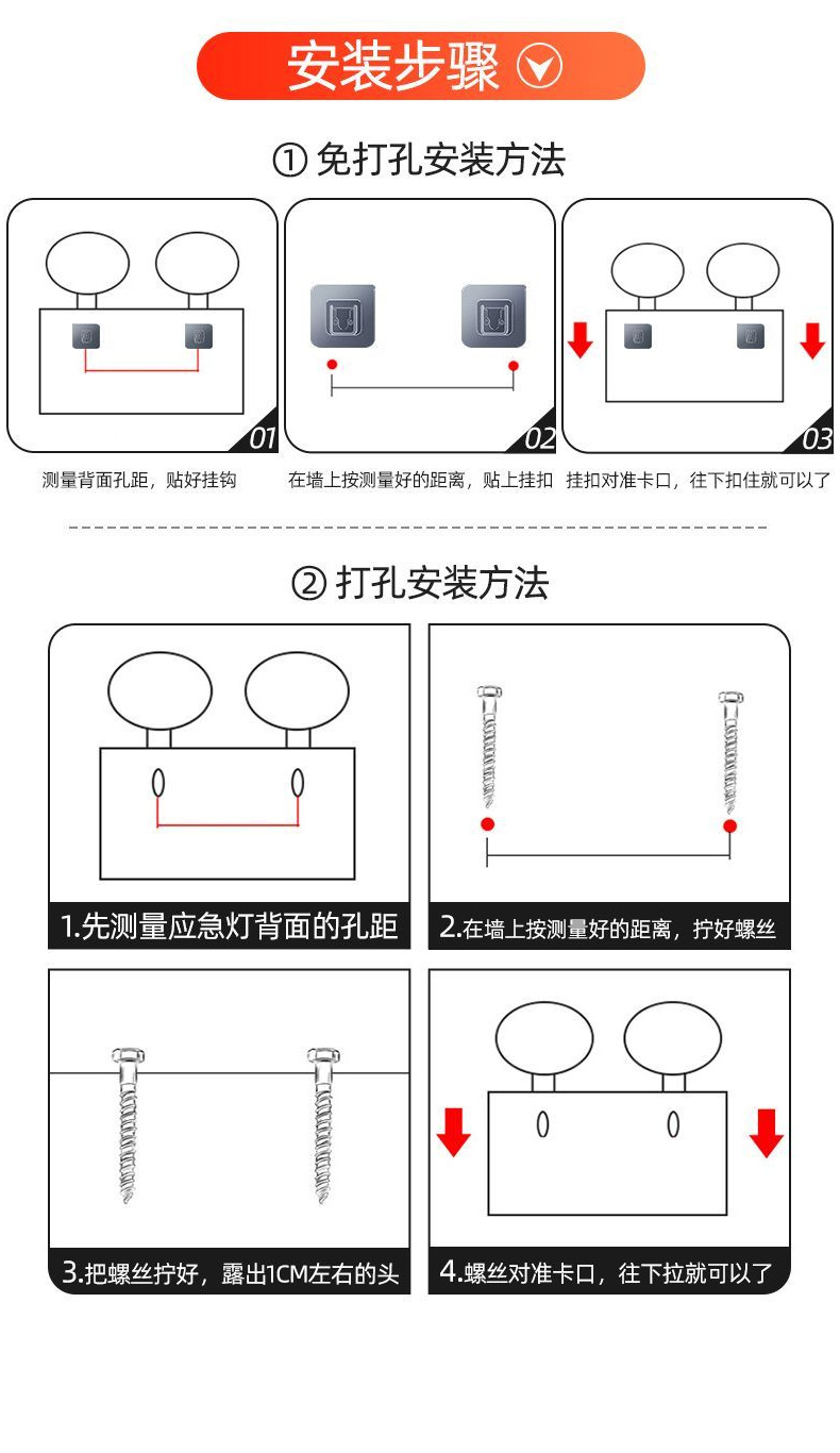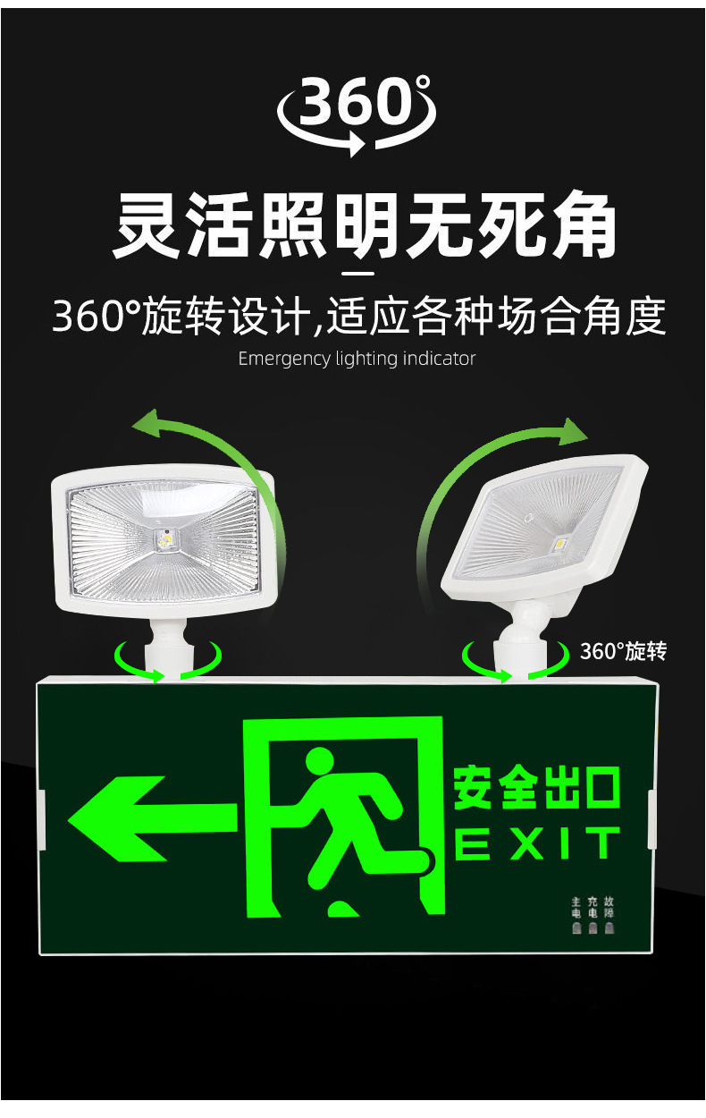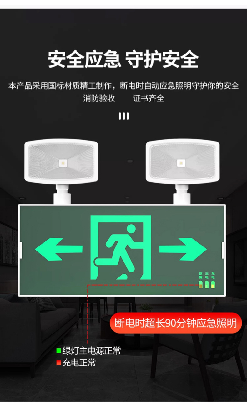 화재 비상 조명 2 대 1 안전 출구 표시판 충전 대피 마커 램프의 펀치 프리 설치스토어 가기