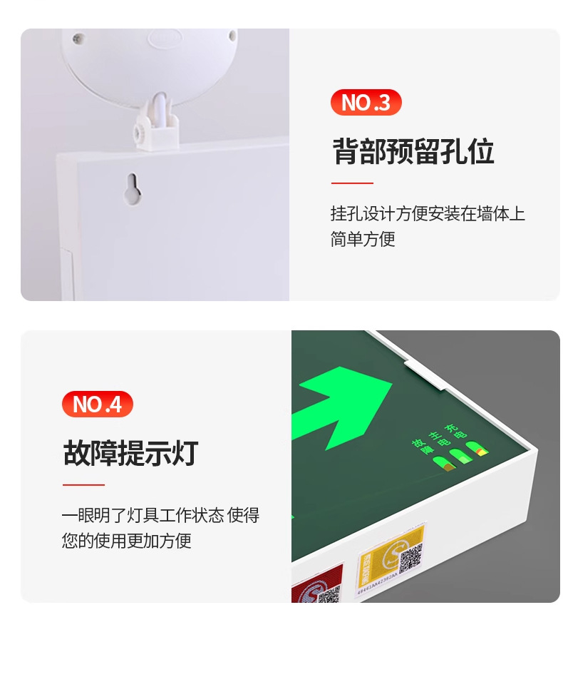 화재 비상 조명 2 대 1 안전 출구 표시판 충전 대피 마커 램프의 펀치 프리 설치