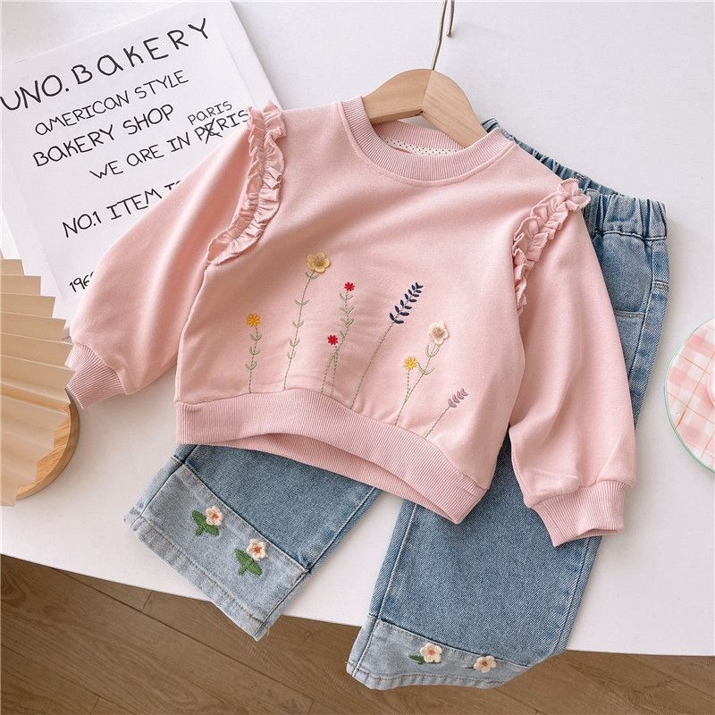 한국 스타일 소녀 스트레이트 다리 청바지 봄과 가을 서양식 패션 느슨한 여성의 보물 넓은 다리 바지 어린이 바지스토어 가기