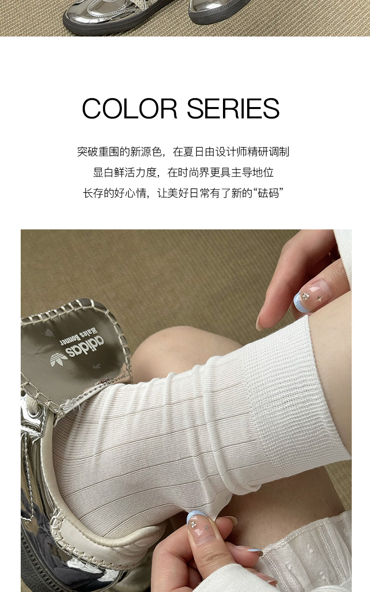 화이트 양말 여성 미드 튜브 양말 봄과 가을 얇은 수직 슬리밍 스포츠 그레이 발레 스타일 여름 필딩 스타킹