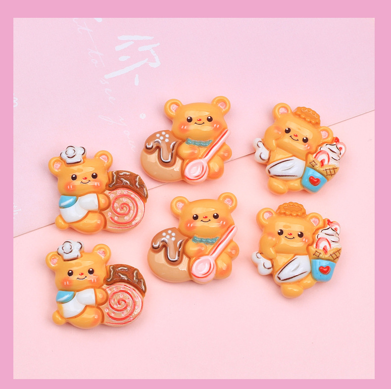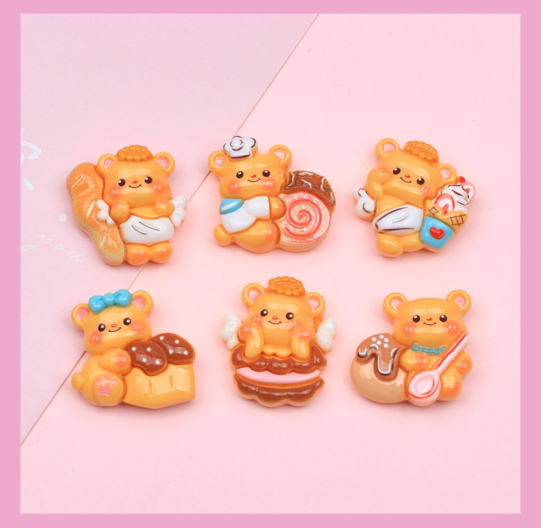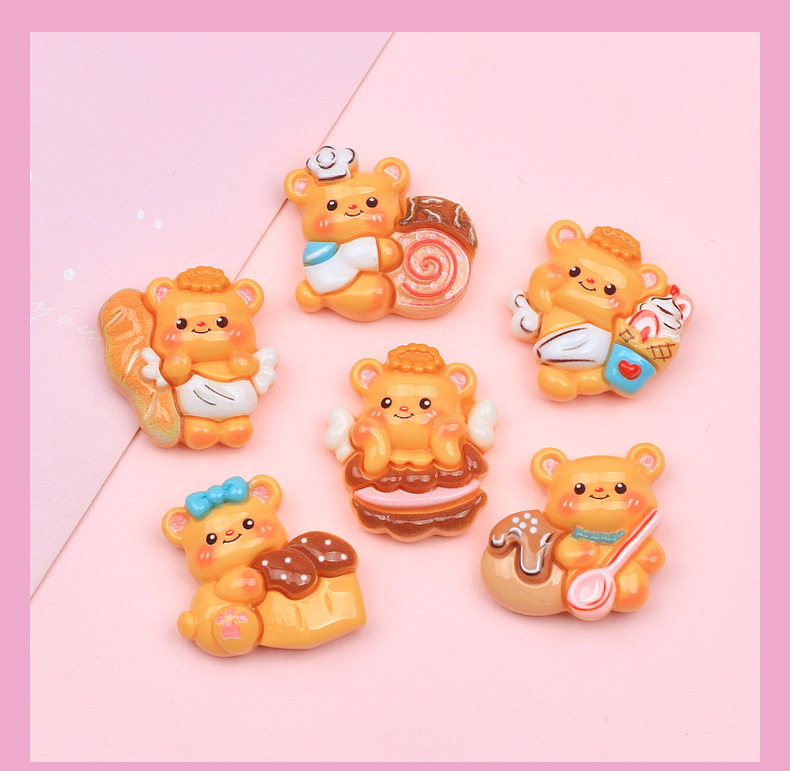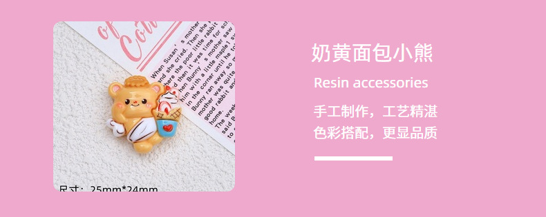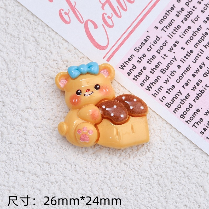 수지 액세서리 도매 크림 젤 만화 머리핀 DIY 구멍 신발 버클 보석 장식 우유 노란색 빵 곰스토어 가기