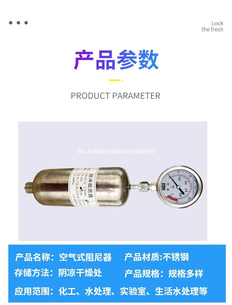 304/316L 스테인레스 스틸 에어 펄스 댐퍼 맥동 버퍼 버퍼 탱크 DN1525 압력 게이지