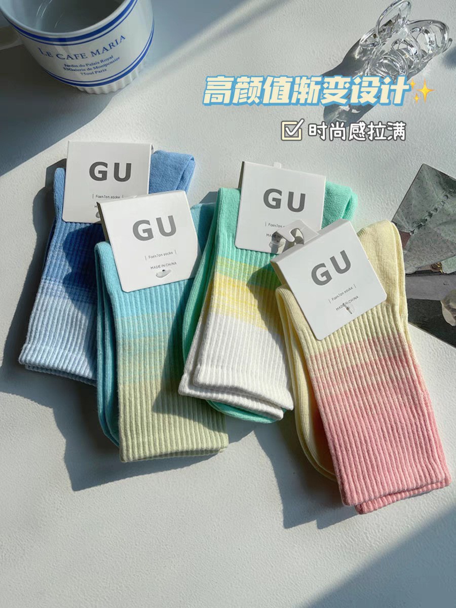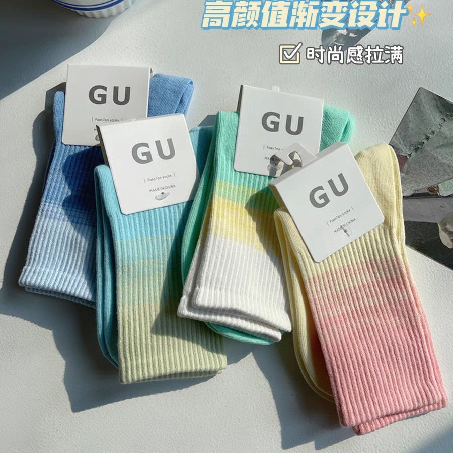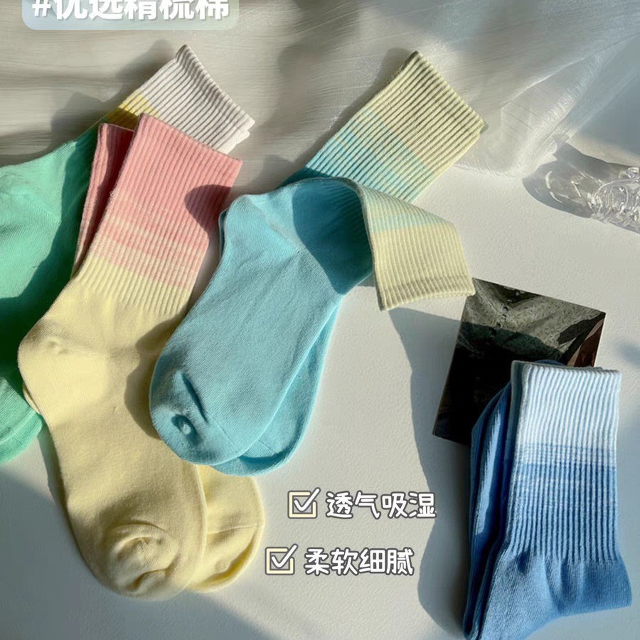 그라디언트 스포츠 양말 여성용 가을 Ins 트렌디 한 퓨어 코튼 넷 레드 썬 스타일 커플 가을 및 겨울 미드 튜브 양말 여성용 양말스토어 가기