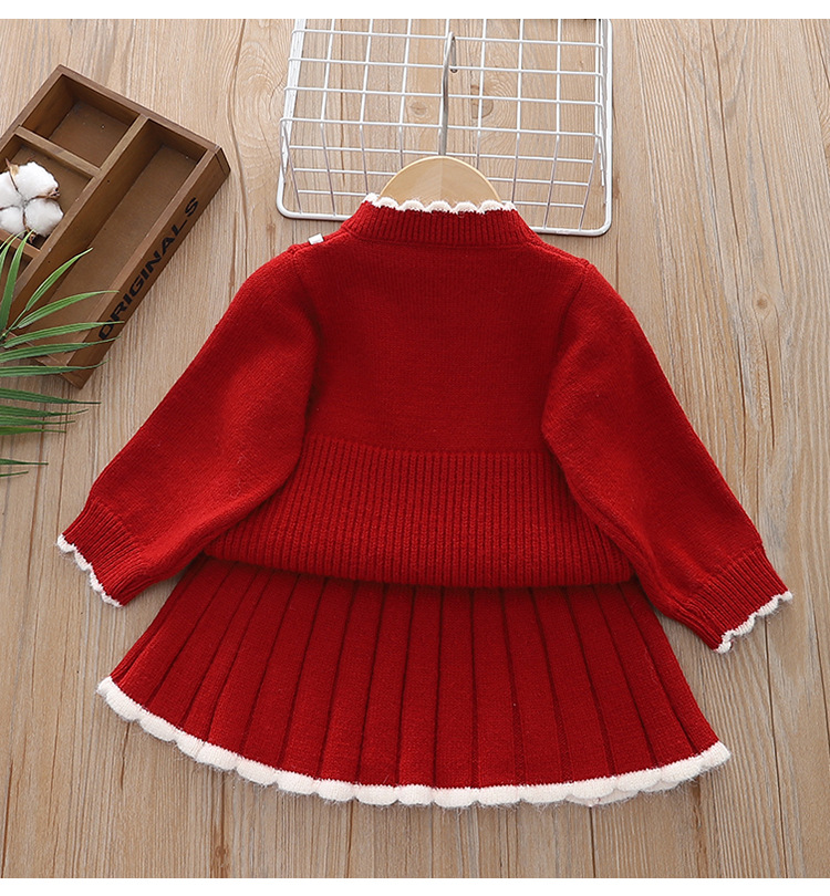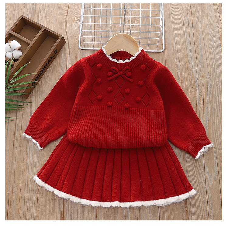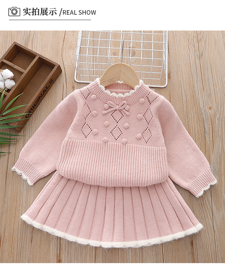 여자 스웨터 세트 니트 2 피스 세트 24 아기 소녀 스타일 터틀넥 스커트를위한 가을 및 겨울 새로운 도착 원피스