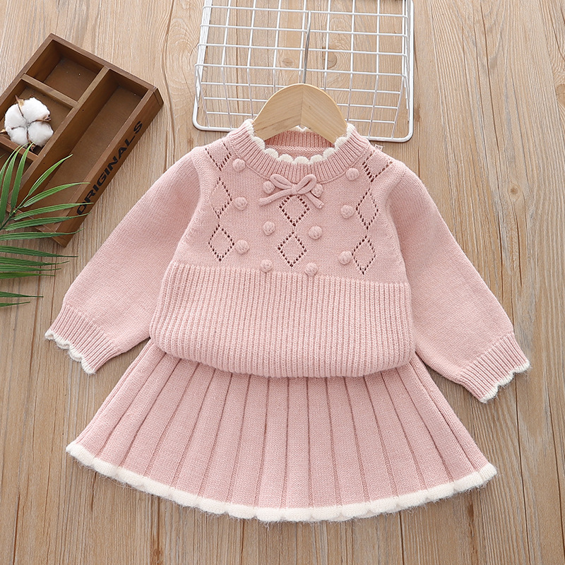 여자 스웨터 세트 니트 2 피스 세트 24 아기 소녀 스타일 터틀넥 스커트를위한 가을 및 겨울 새로운 도착 원피스스토어 가기