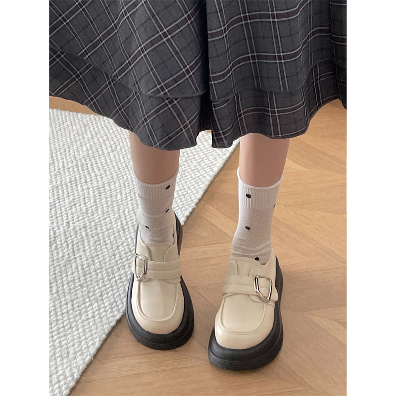 라운드 토 레트로 영국 스타일 두꺼운 작은 가죽 신발 여성 여름 2024 새로운 흰색 프랑스 스타일 올 매치 싱글 레이어 신발