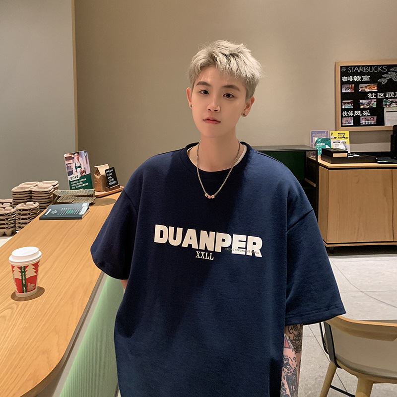 반팔 남자 여름 새로운 유행 브랜드 올 매치 남자 티셔츠 중량급 십대 느슨한 반소매 티셔츠스토어 가기