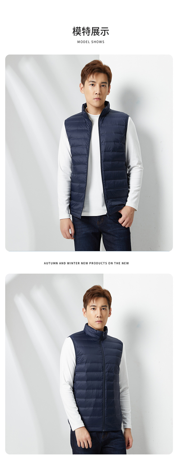 남자 다운 조끼 경량 가을 및 겨울 새로운 짧은 칼라 웨이스트 코트 캐주얼 울트라 라이트 다운 재킷 조끼 재킷스토어 가기