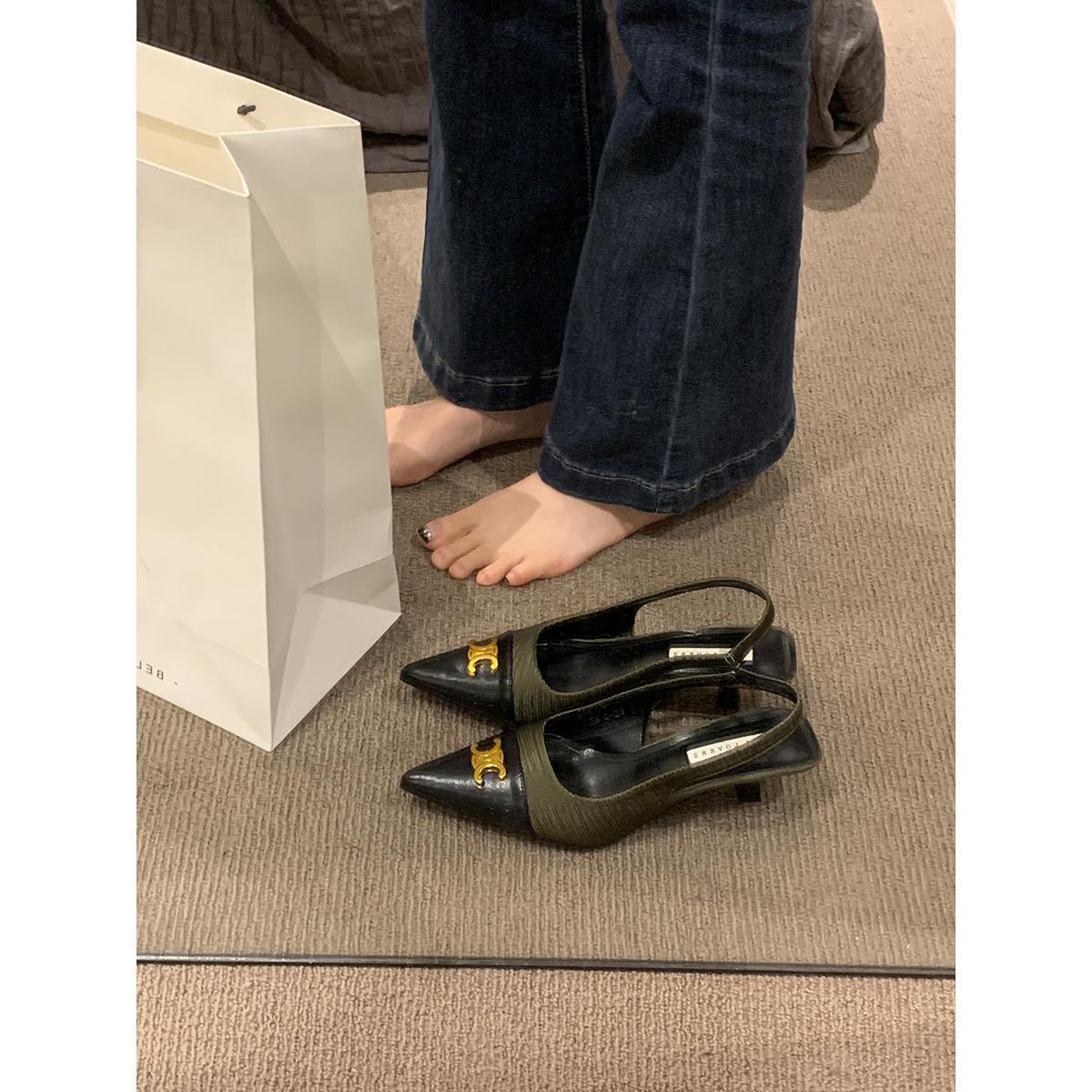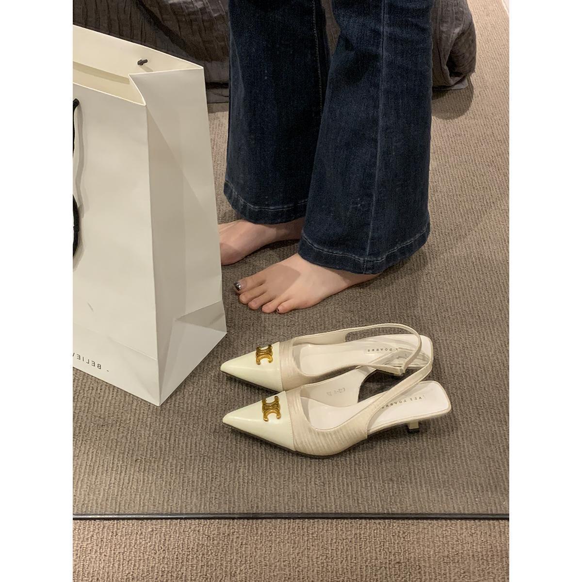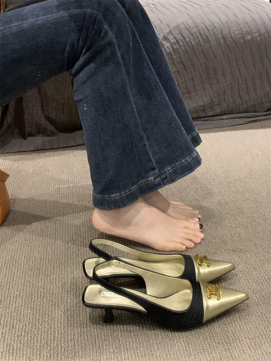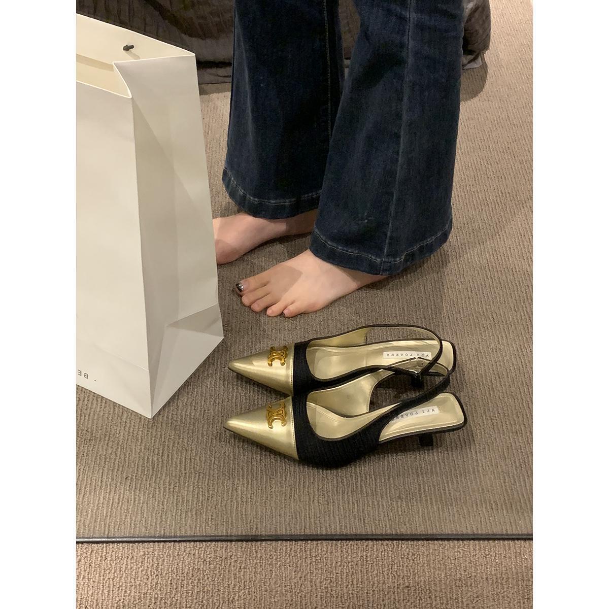 샤넬 스타일 올 매치 젠틀 하이힐 슈즈 프렌치 하이 엔드 샌들 여성용 우아한 메리 제인 싱글 레이어 슈즈 2024 여름 뉴스토어 가기