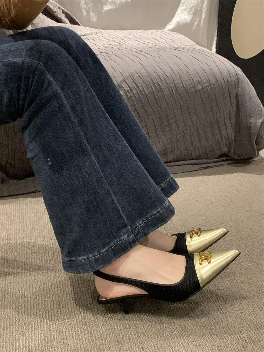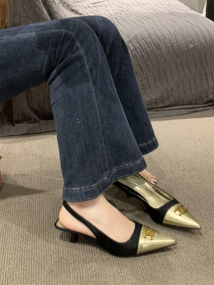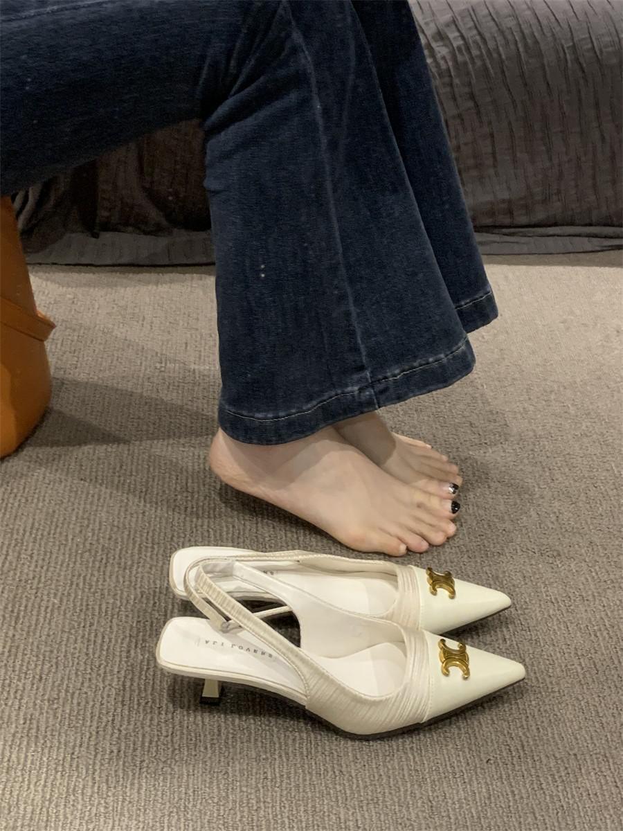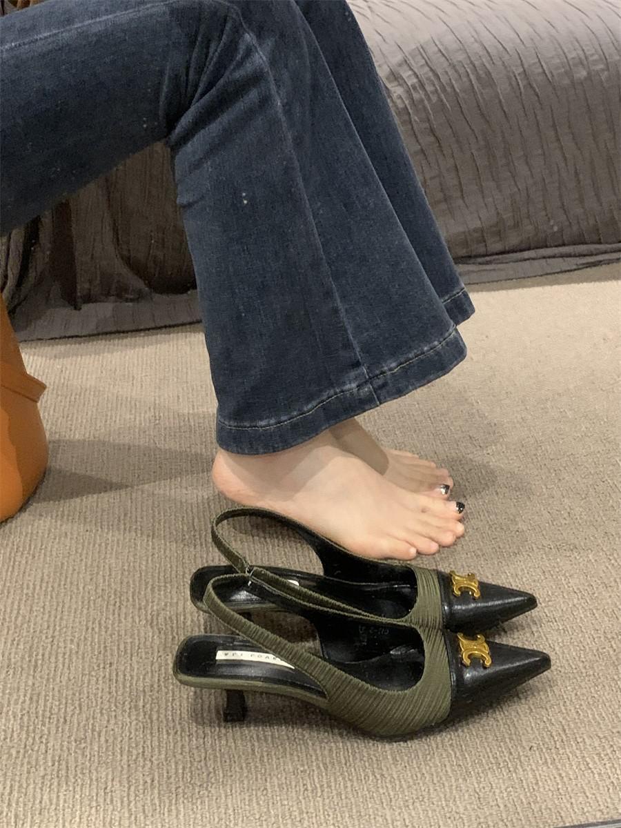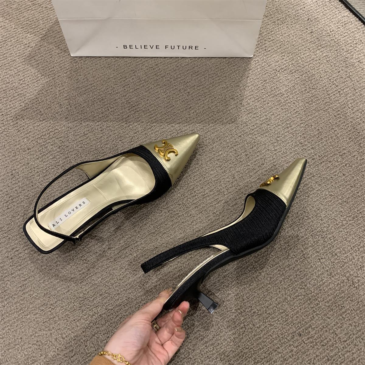 샤넬 스타일 올 매치 젠틀 하이힐 슈즈 프렌치 하이 엔드 샌들 여성용 우아한 메리 제인 싱글 레이어 슈즈 2024 여름 뉴스토어 가기