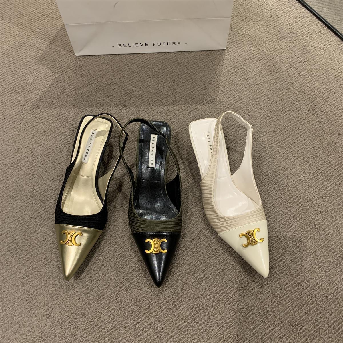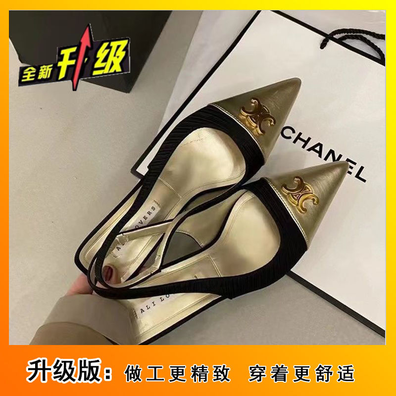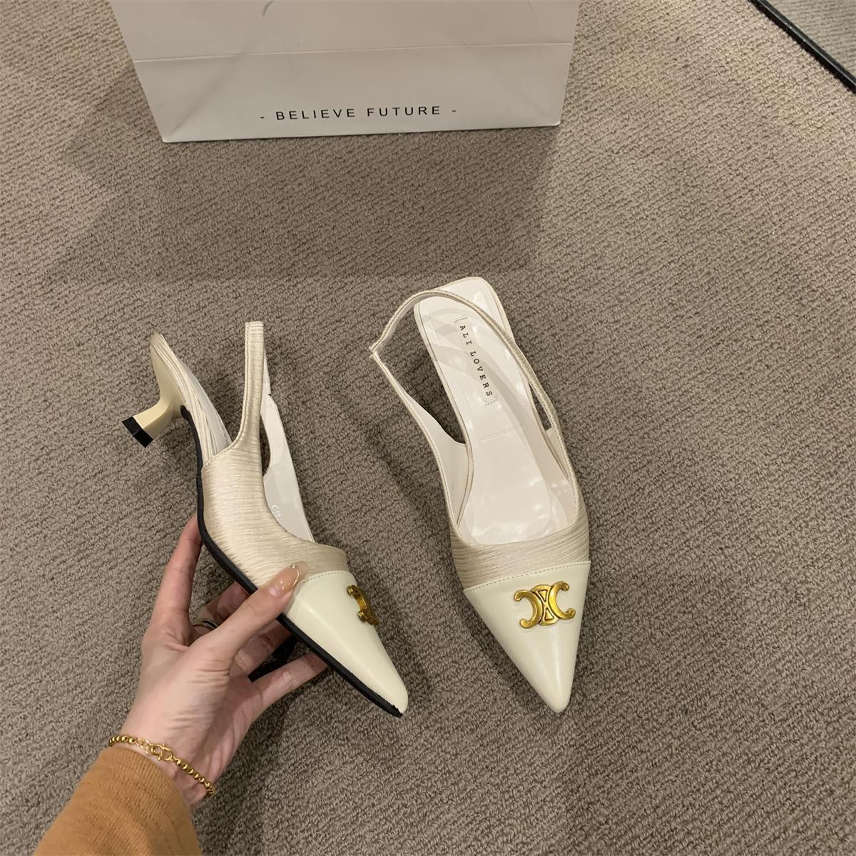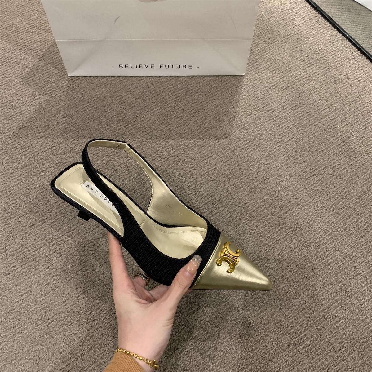 샤넬 스타일 올 매치 젠틀 하이힐 슈즈 프렌치 하이 엔드 샌들 여성용 우아한 메리 제인 싱글 레이어 슈즈 2024 여름 뉴