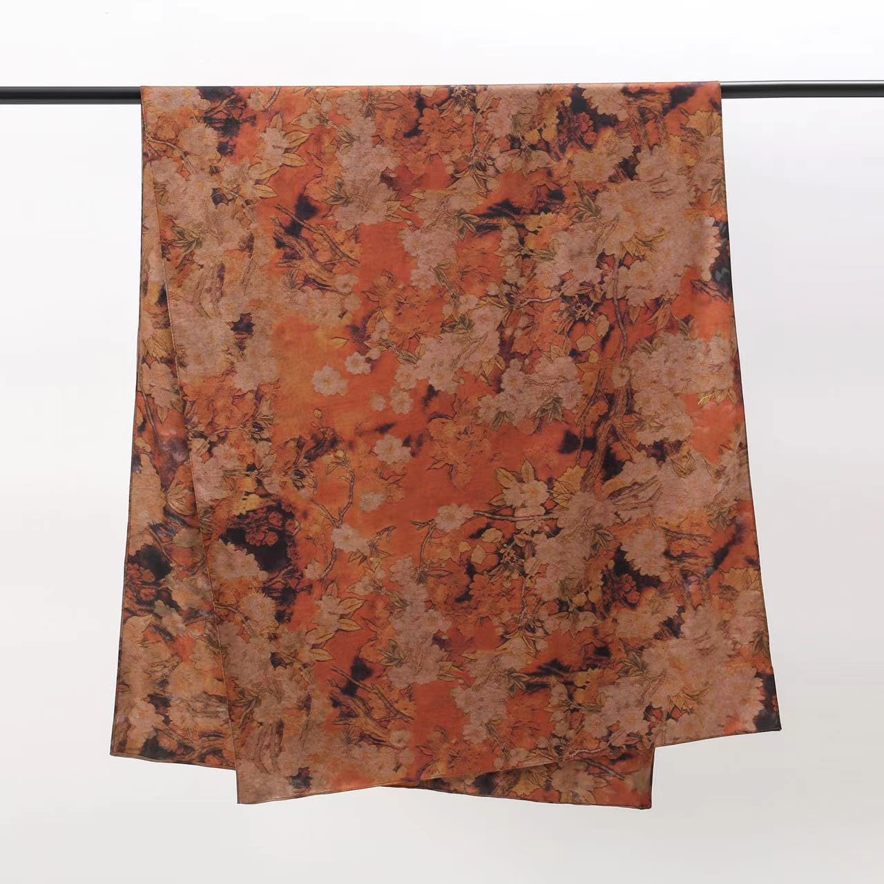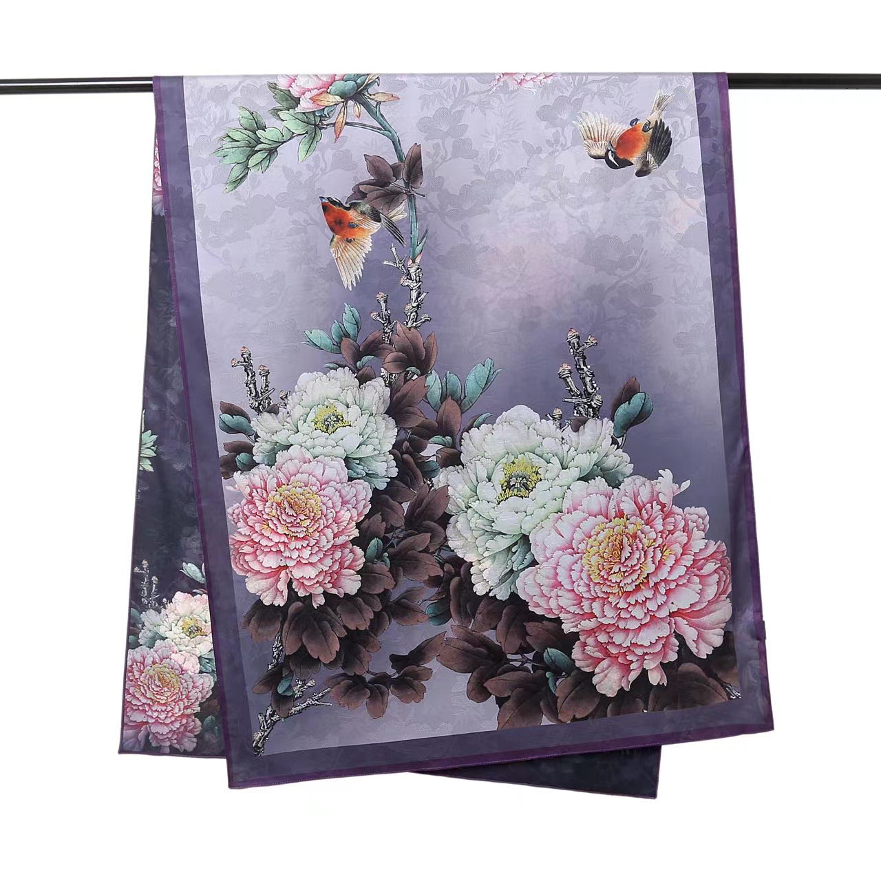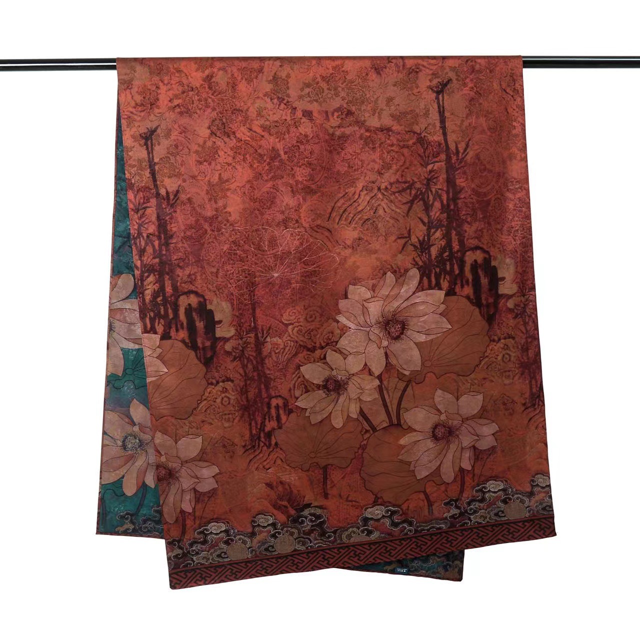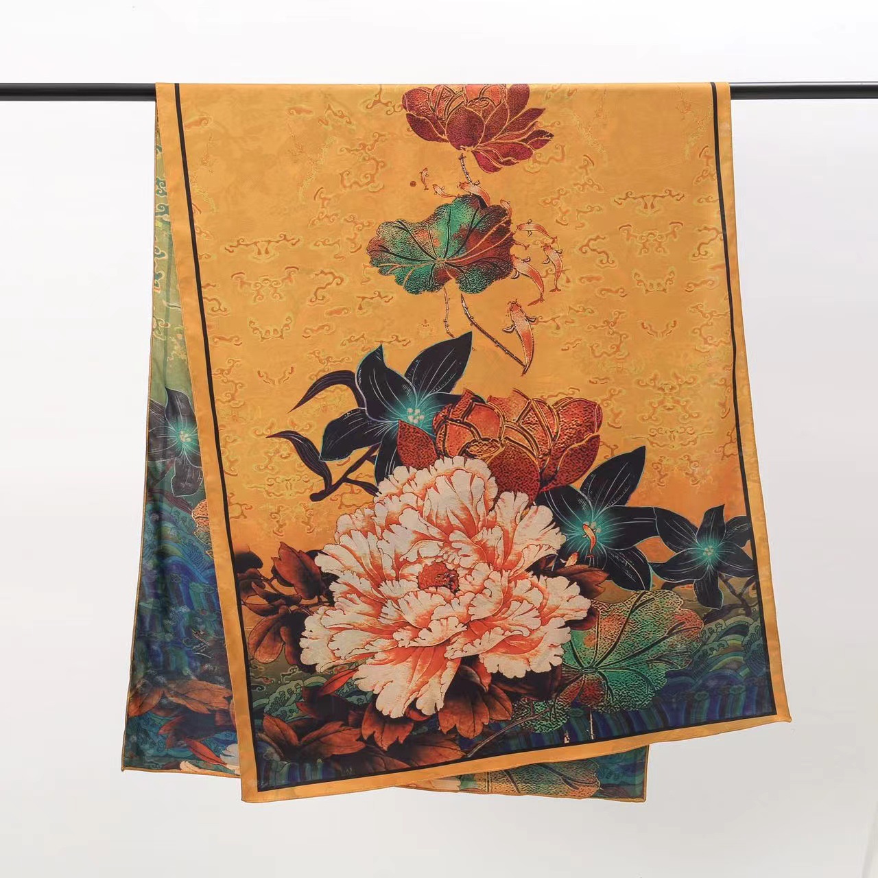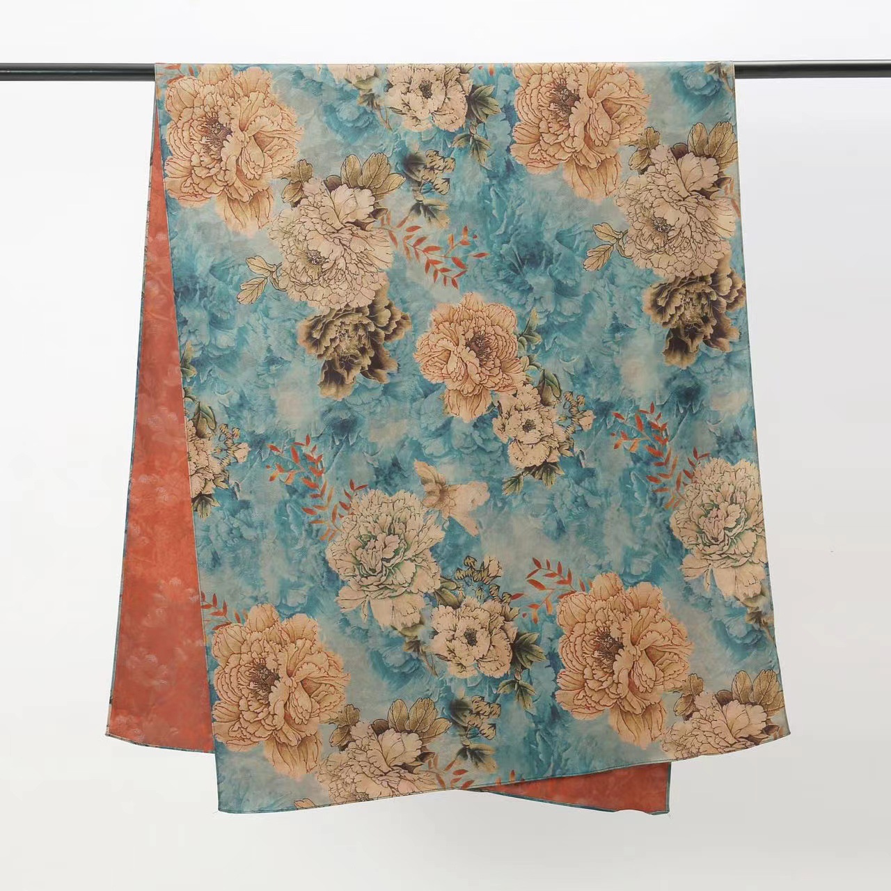 드래곤 년 길조 어머니 Xiangyun 원사 꽃 스카프 새로운 뽕나무 실크 복고풍 스타일 중국 스타일 스카프 우아한 긴 스카프