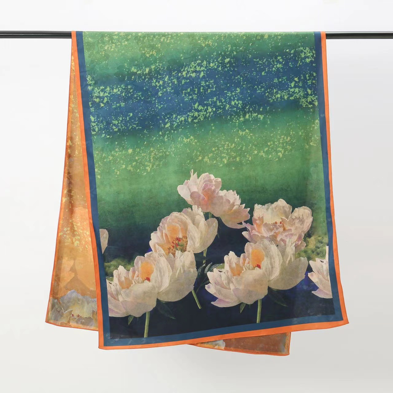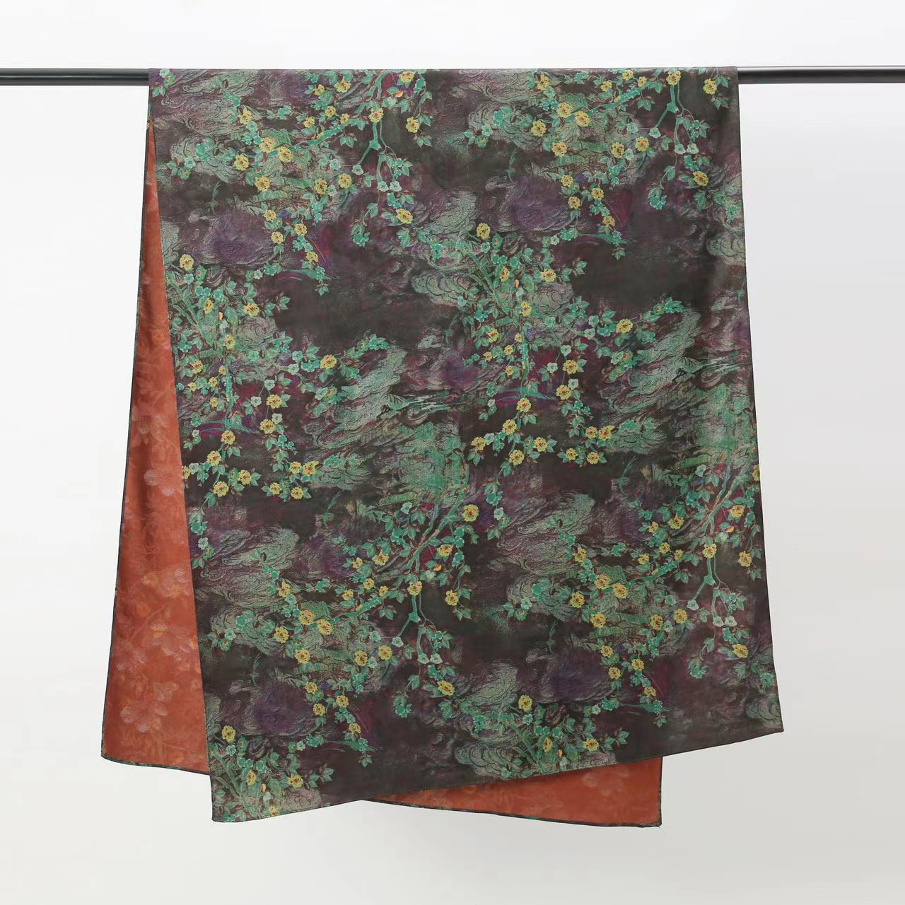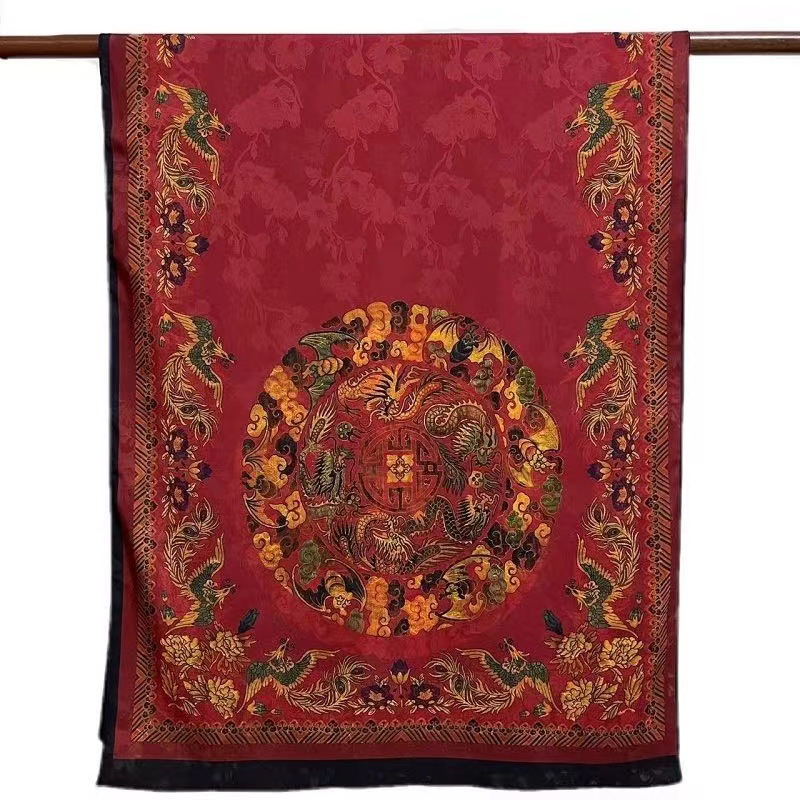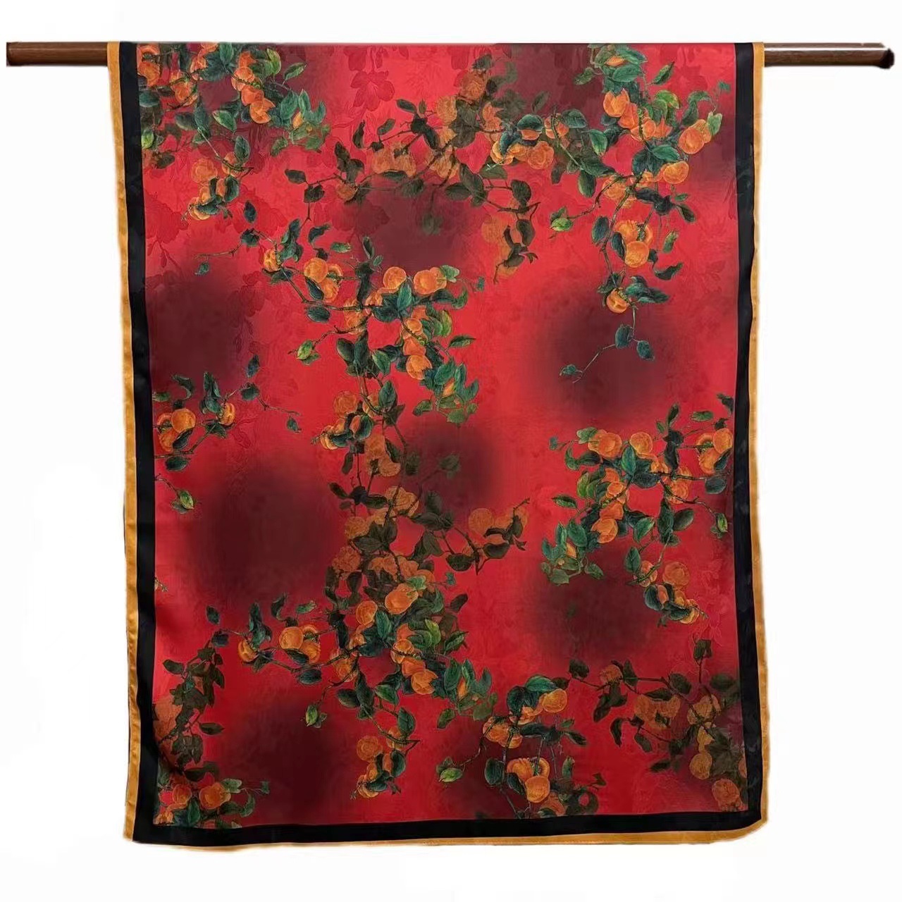 드래곤 년 길조 어머니 Xiangyun 원사 꽃 스카프 새로운 뽕나무 실크 복고풍 스타일 중국 스타일 스카프 우아한 긴 스카프