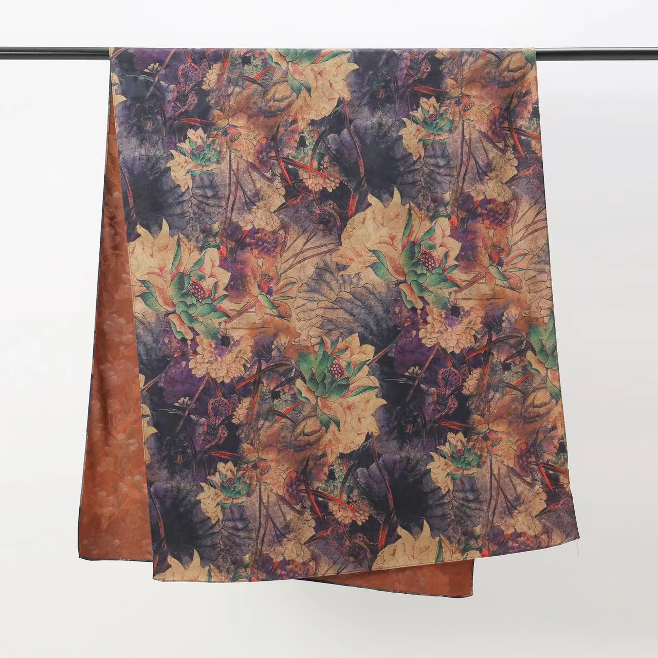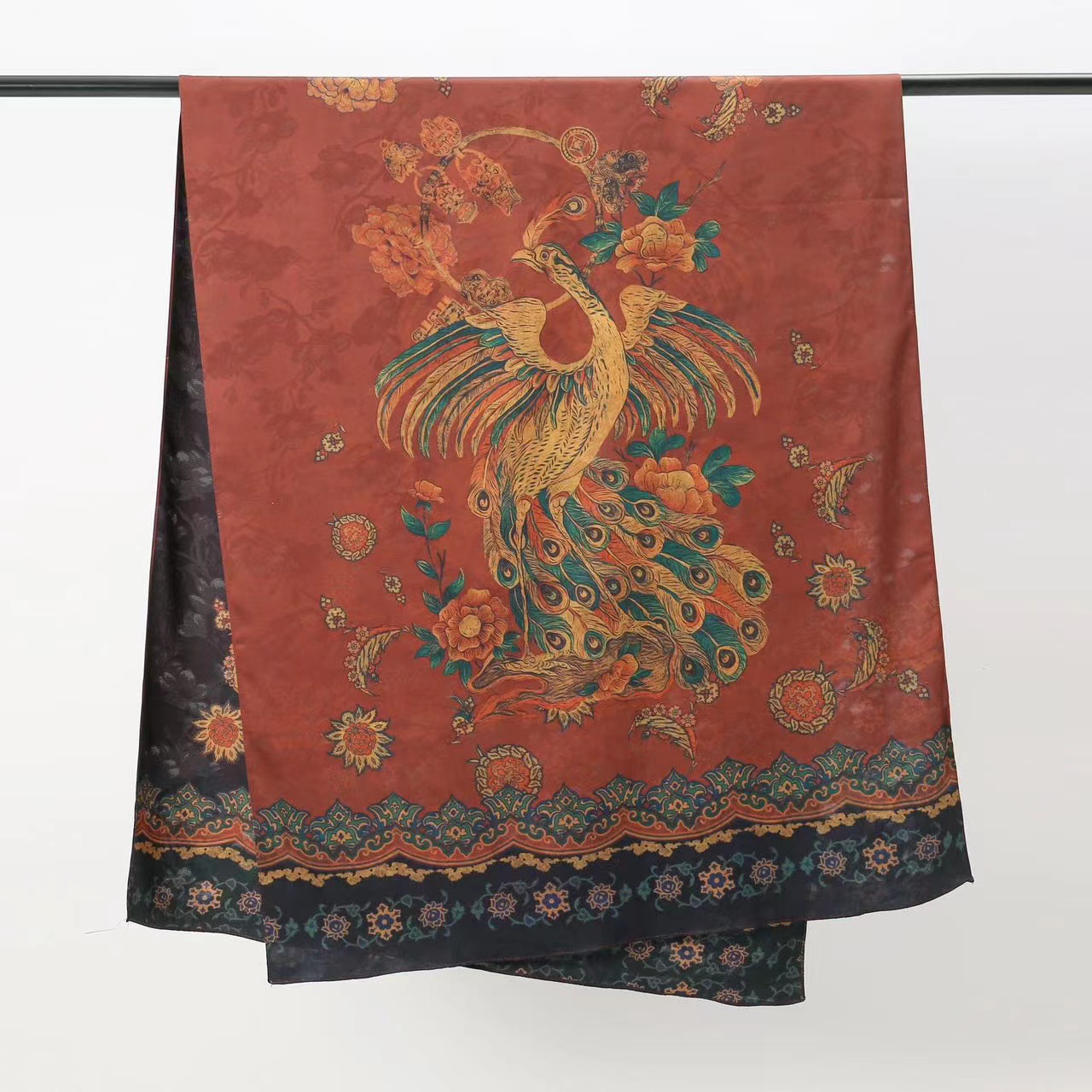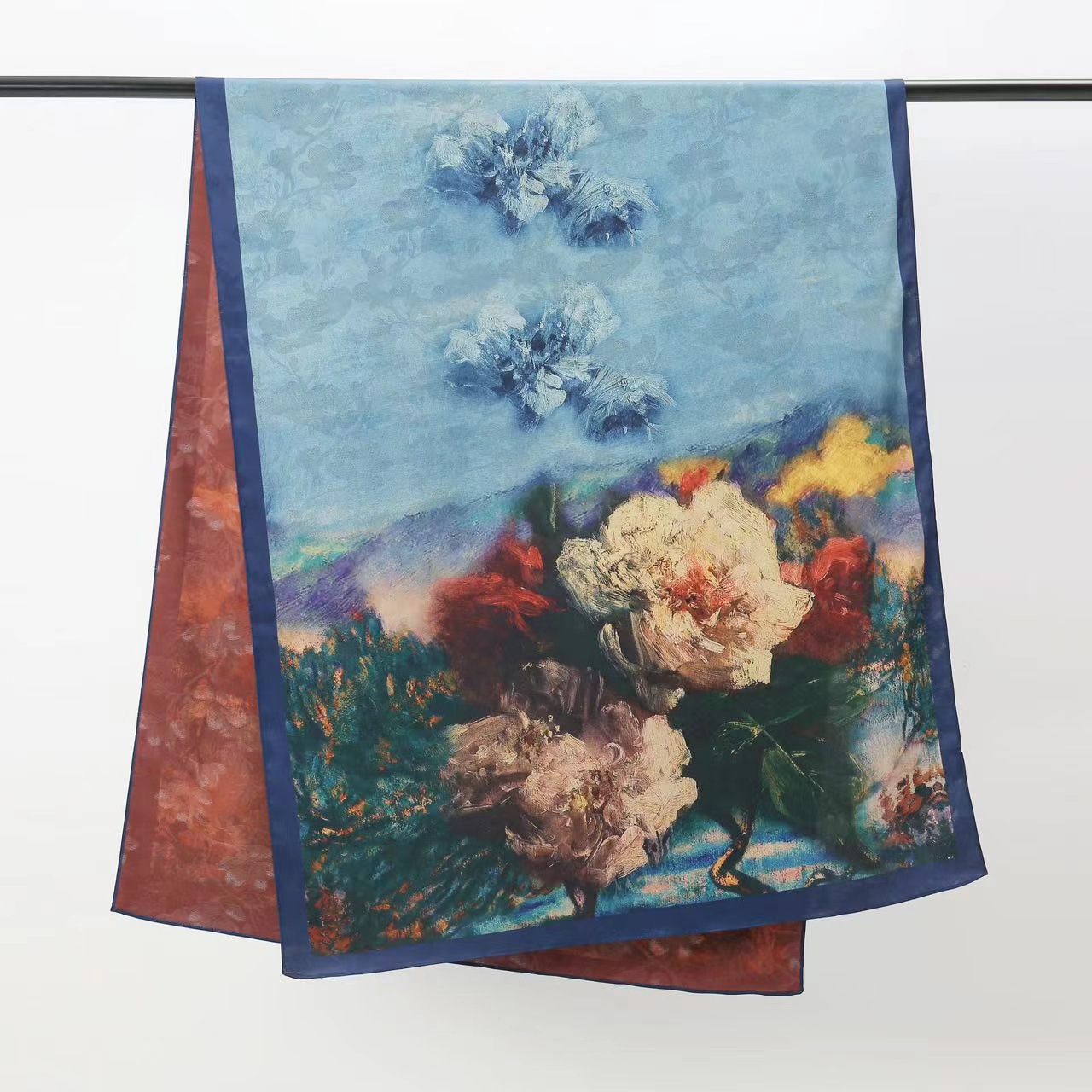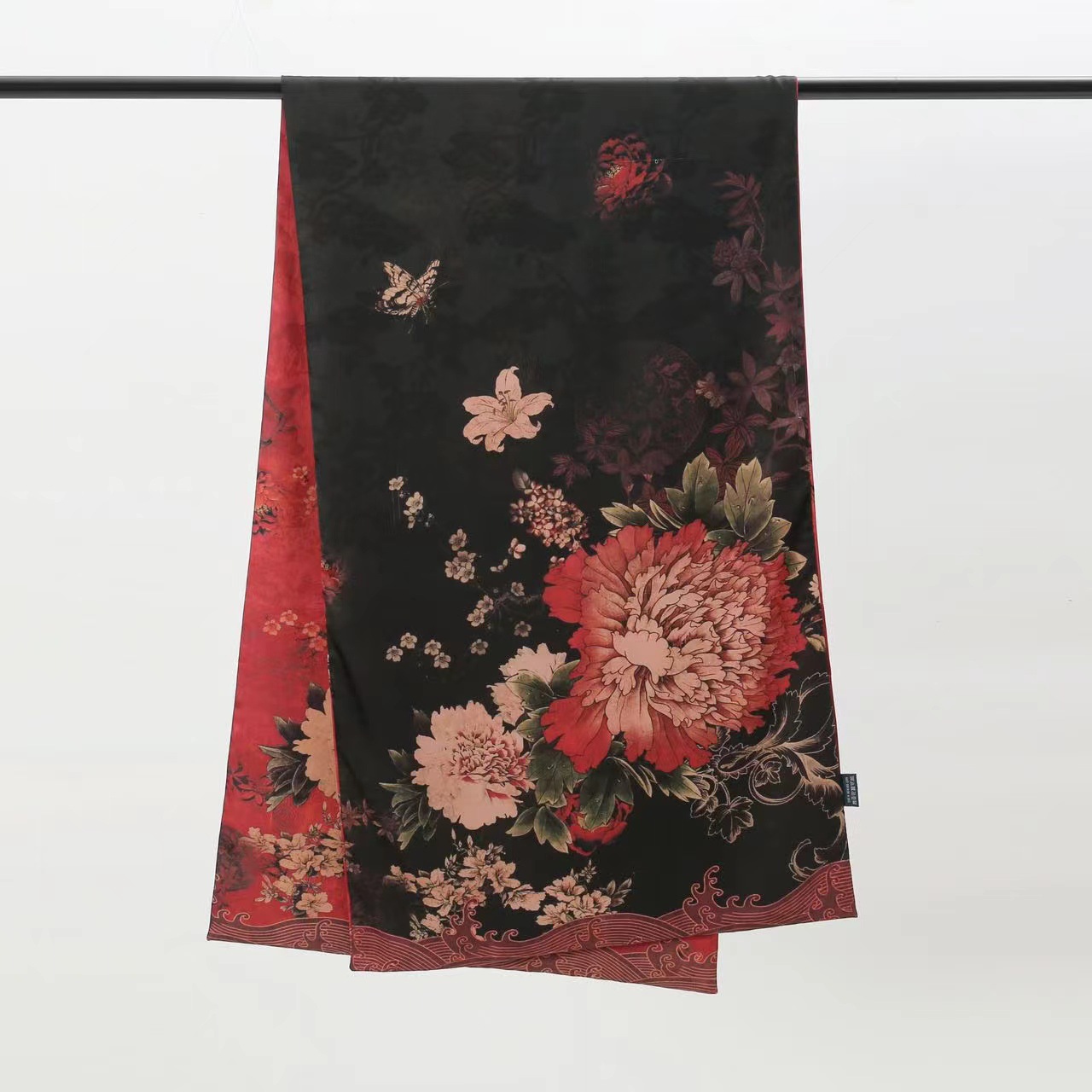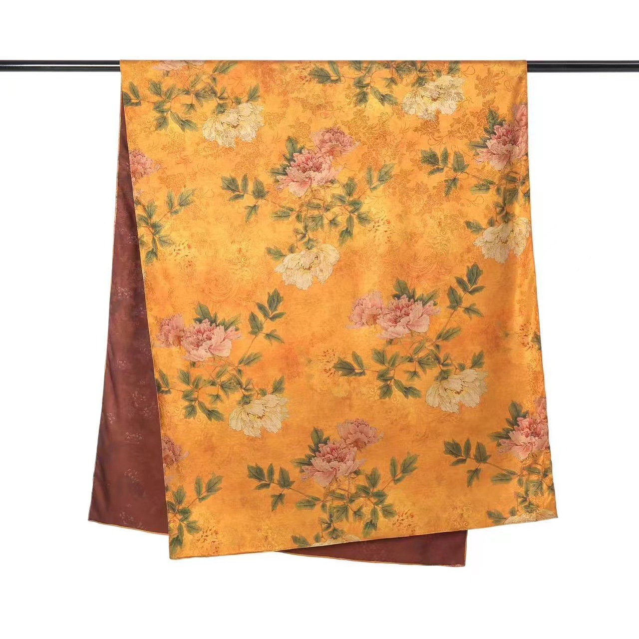 드래곤 년 길조 어머니 Xiangyun 원사 꽃 스카프 새로운 뽕나무 실크 복고풍 스타일 중국 스타일 스카프 우아한 긴 스카프