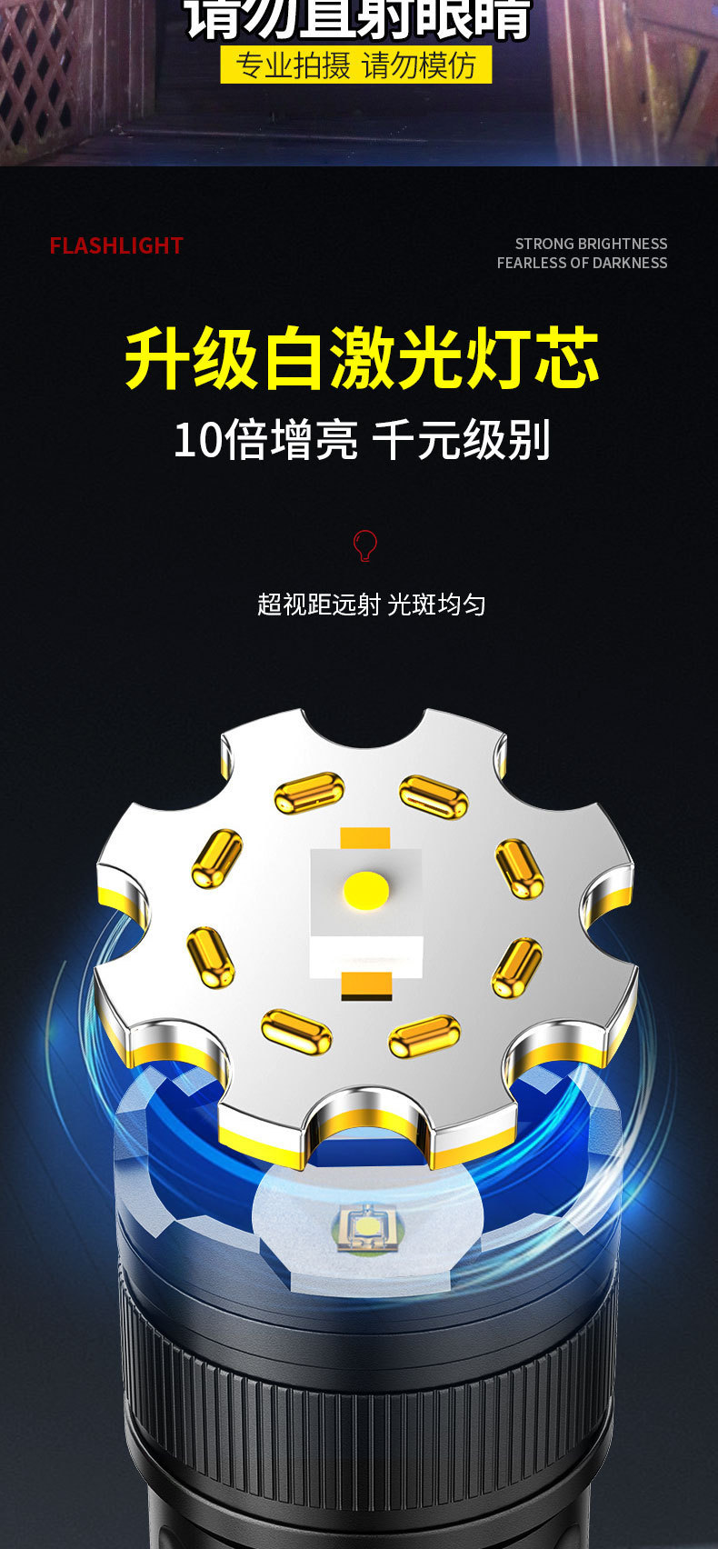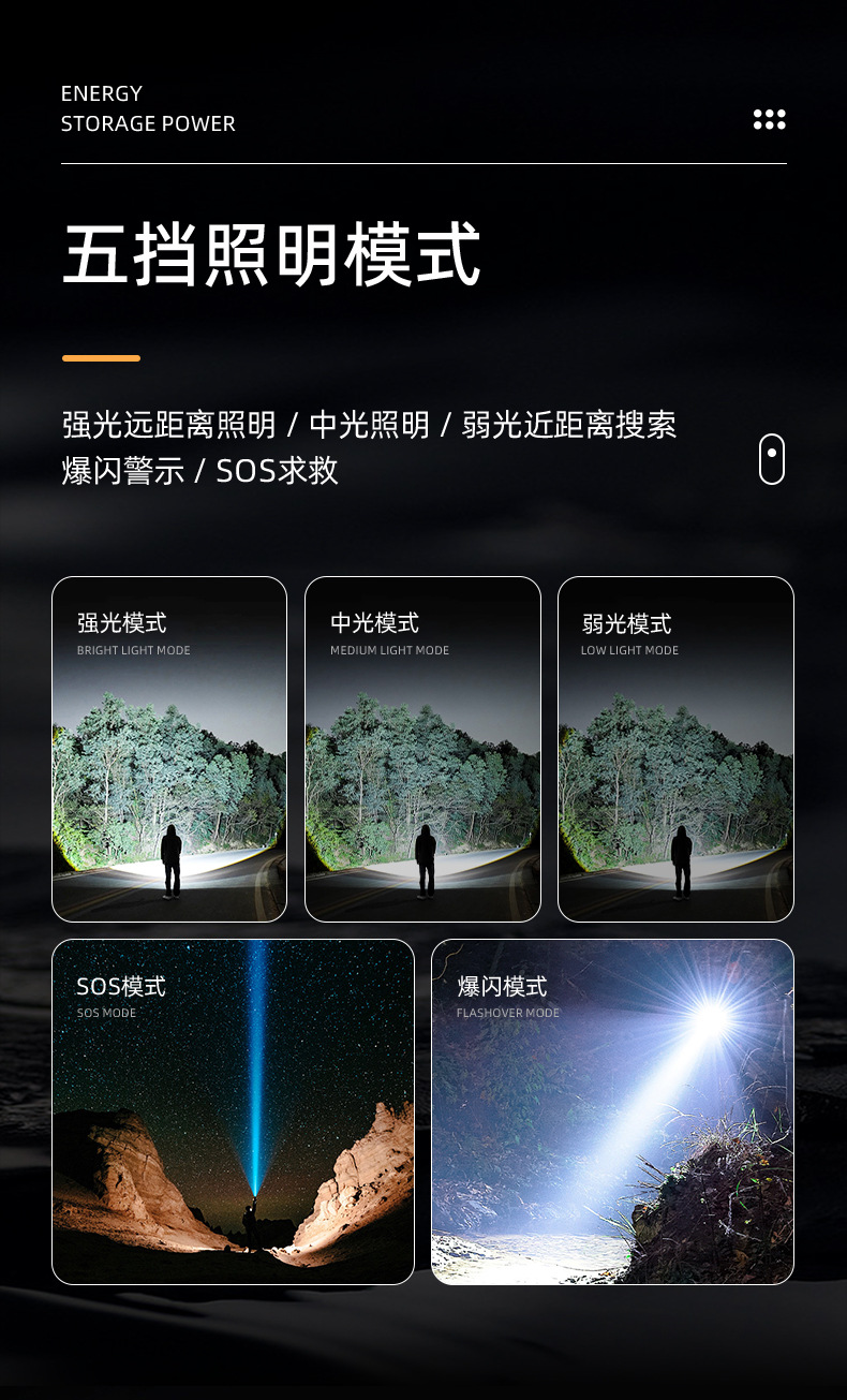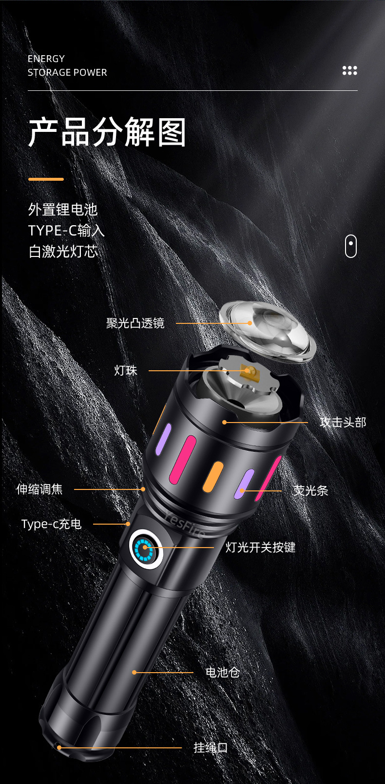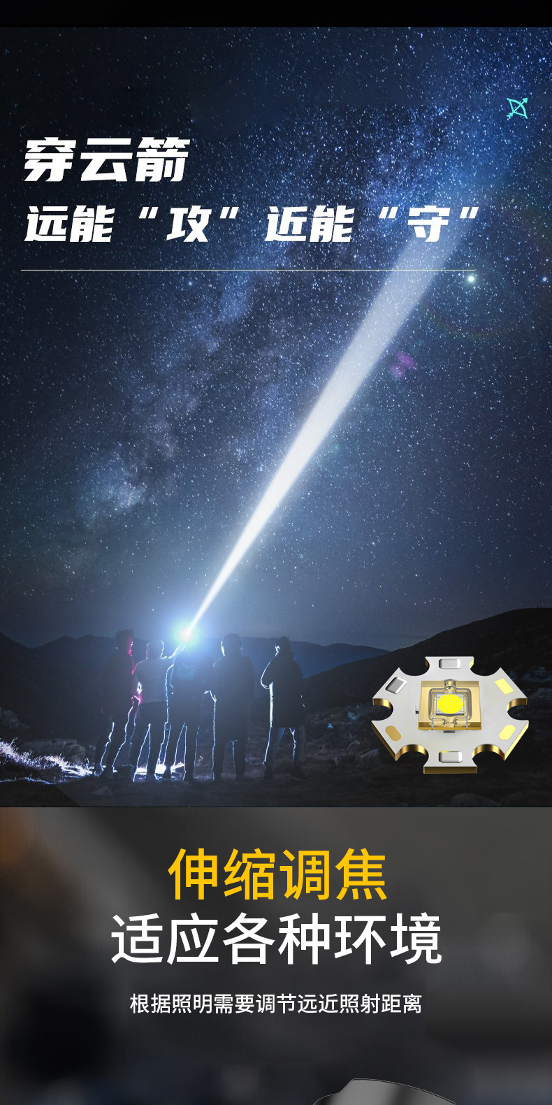 국경 새로운 강력한 손전등 Type-c 충전 슈퍼 밝은 야외 장거리 다기능 손전등스토어 가기