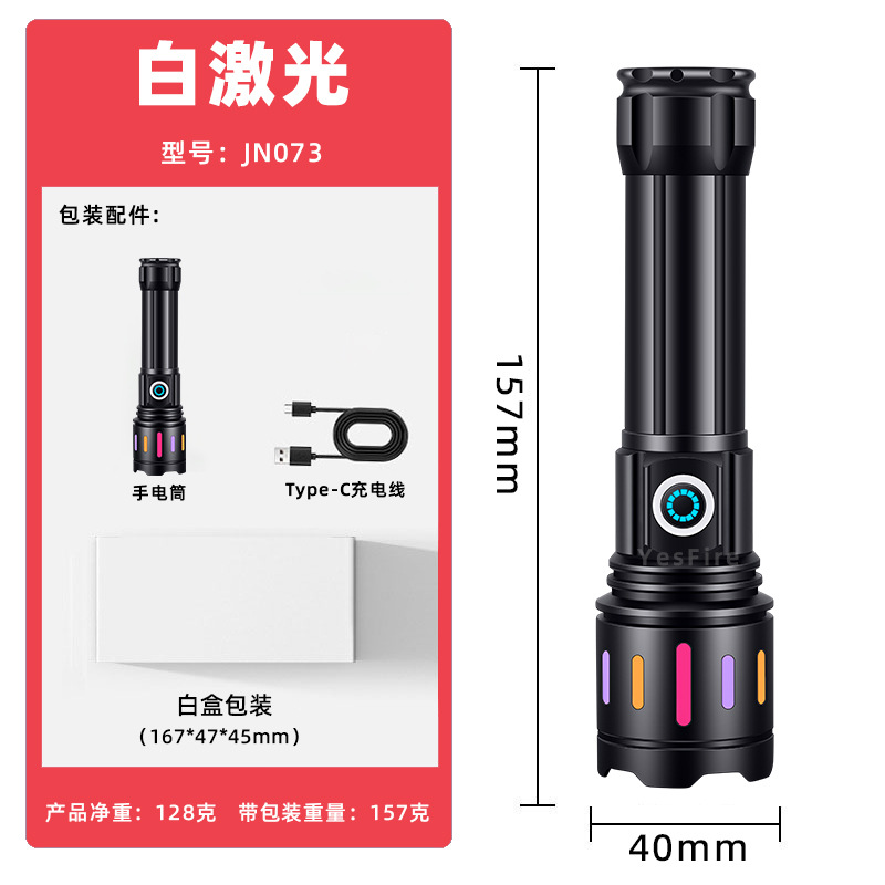 • JN-151 백색 레이저 손전등 + 플라스틱 상자 + 충전 케이블
