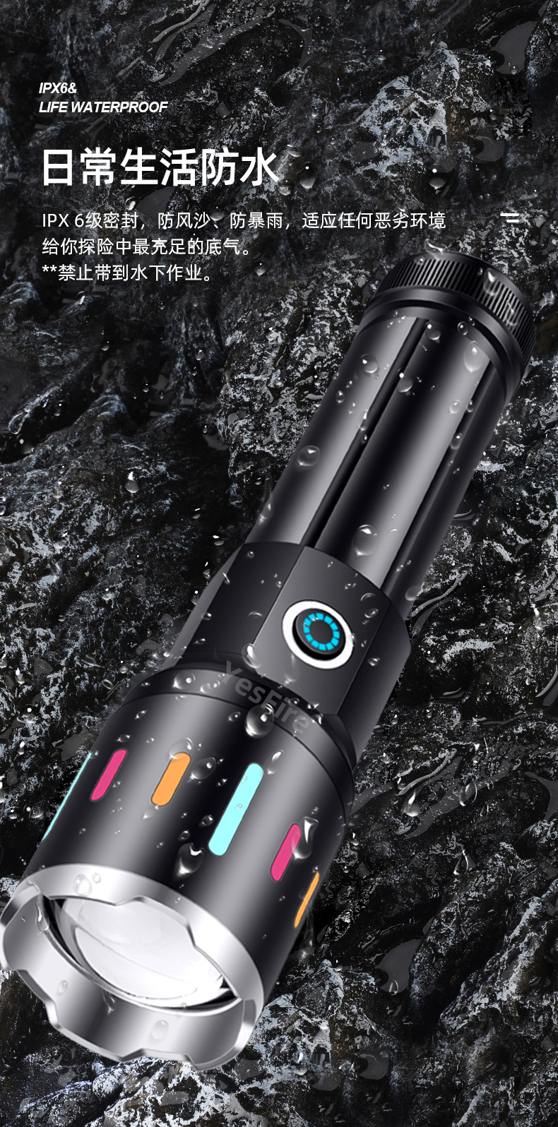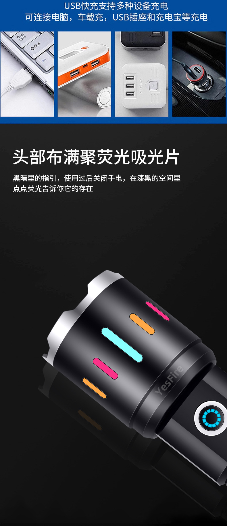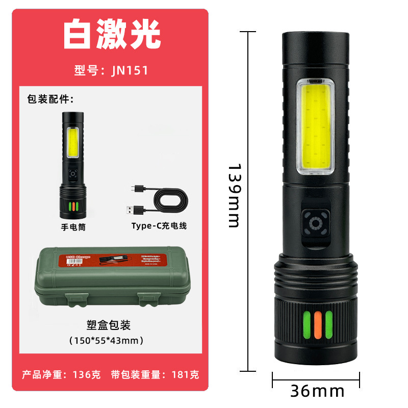 • JN-091 손전등 + 측면 조명 + 내장 배터리 + 컬러 박스 + 충전 케이블