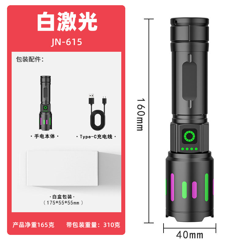 • JN615 손전등(충전 케이블 + 흰색 상자) [배터리는 포함되어 있지 않음]
