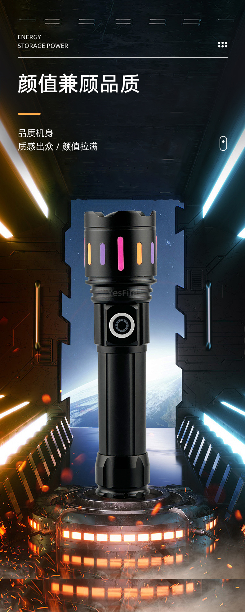 국경 새로운 강력한 손전등 Type-c 충전 슈퍼 밝은 야외 장거리 다기능 손전등