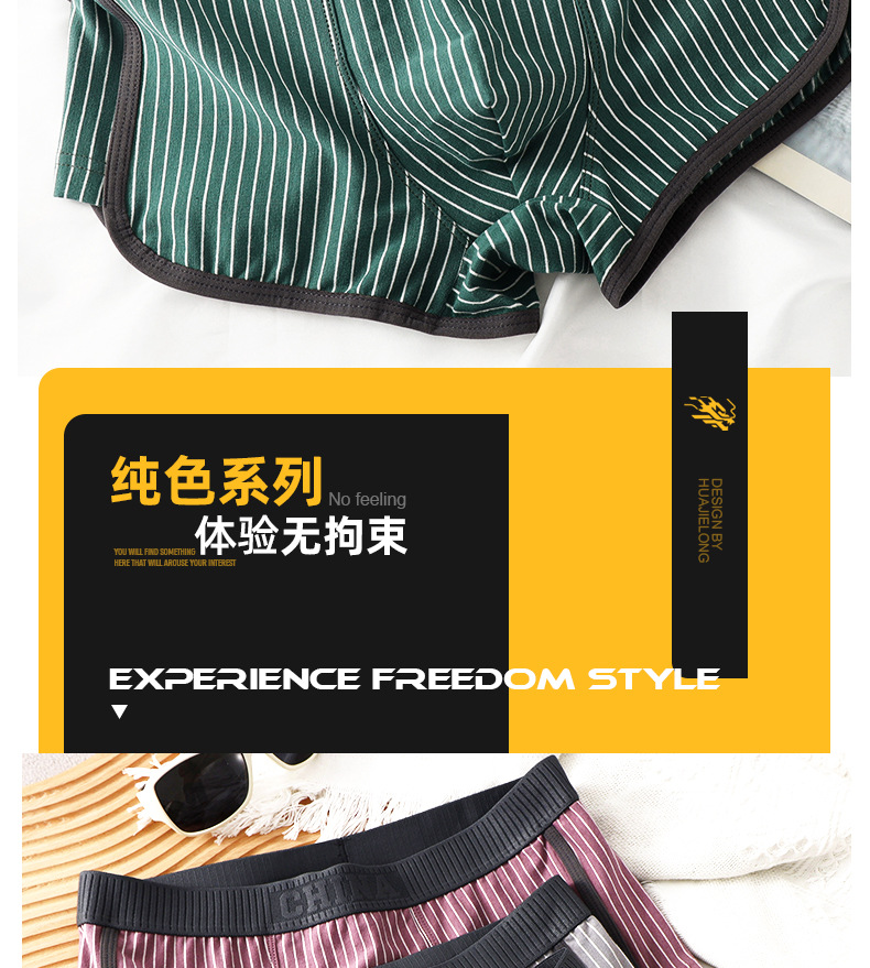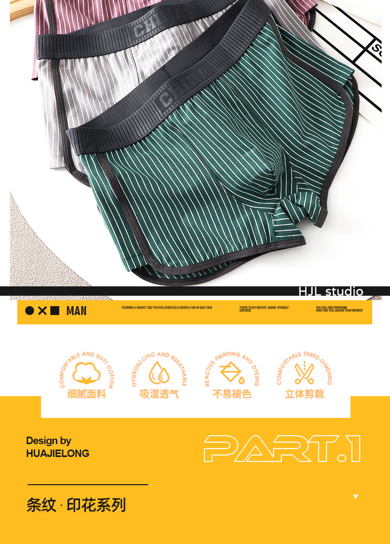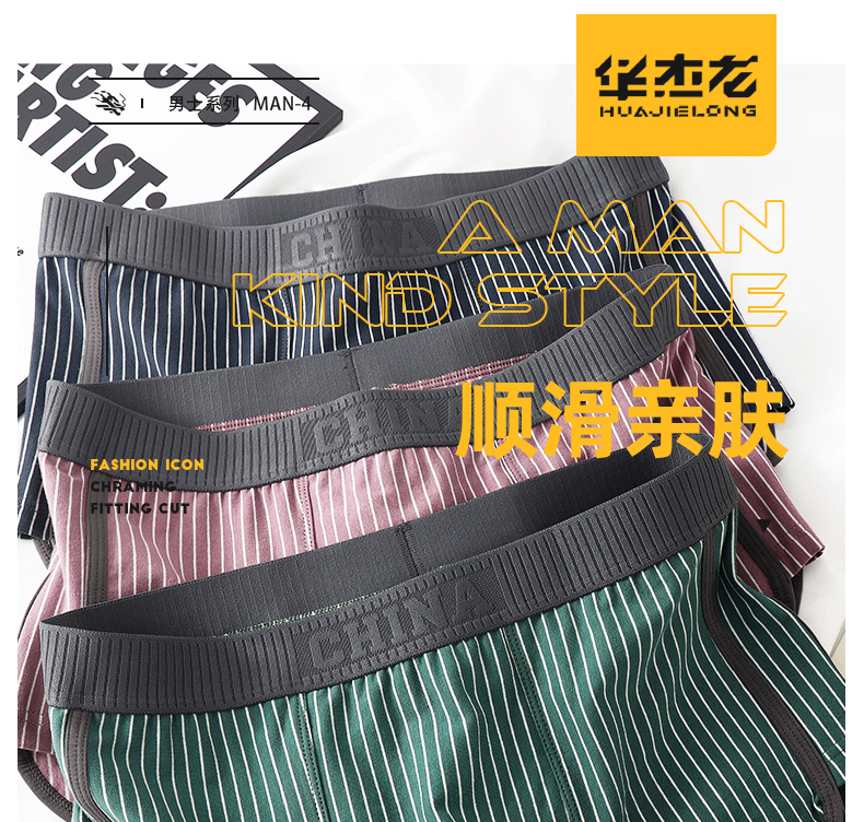 새로운 Huajielong 스트라이프 코튼 남성용 속옷 복서 통기성 어린 소년 트렌드 반바지스토어 가기