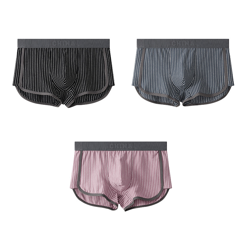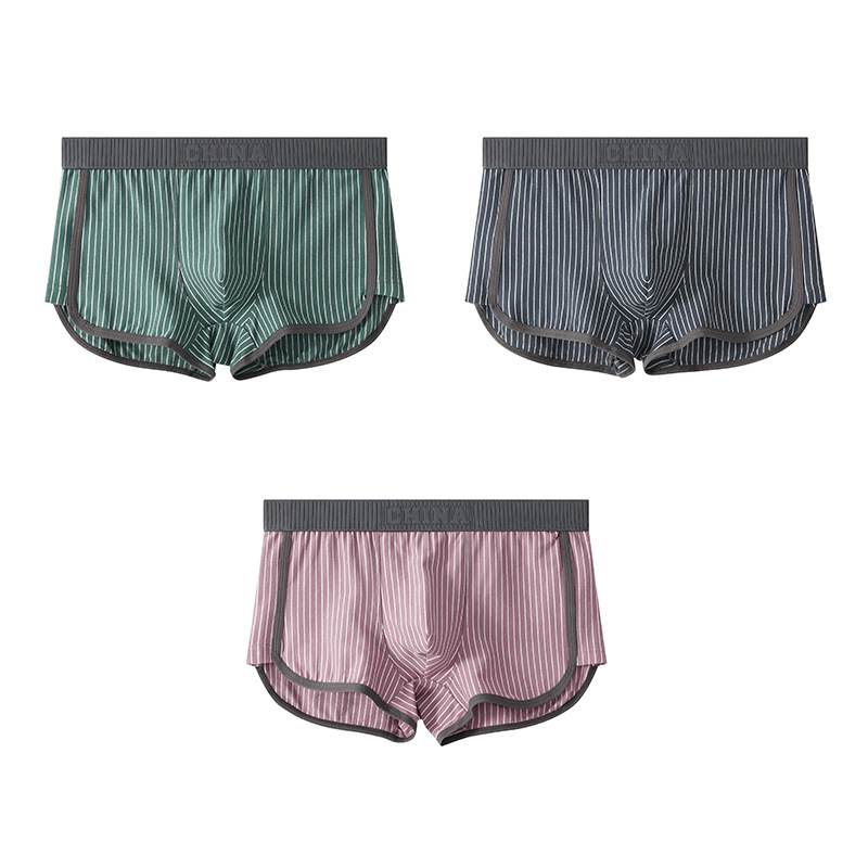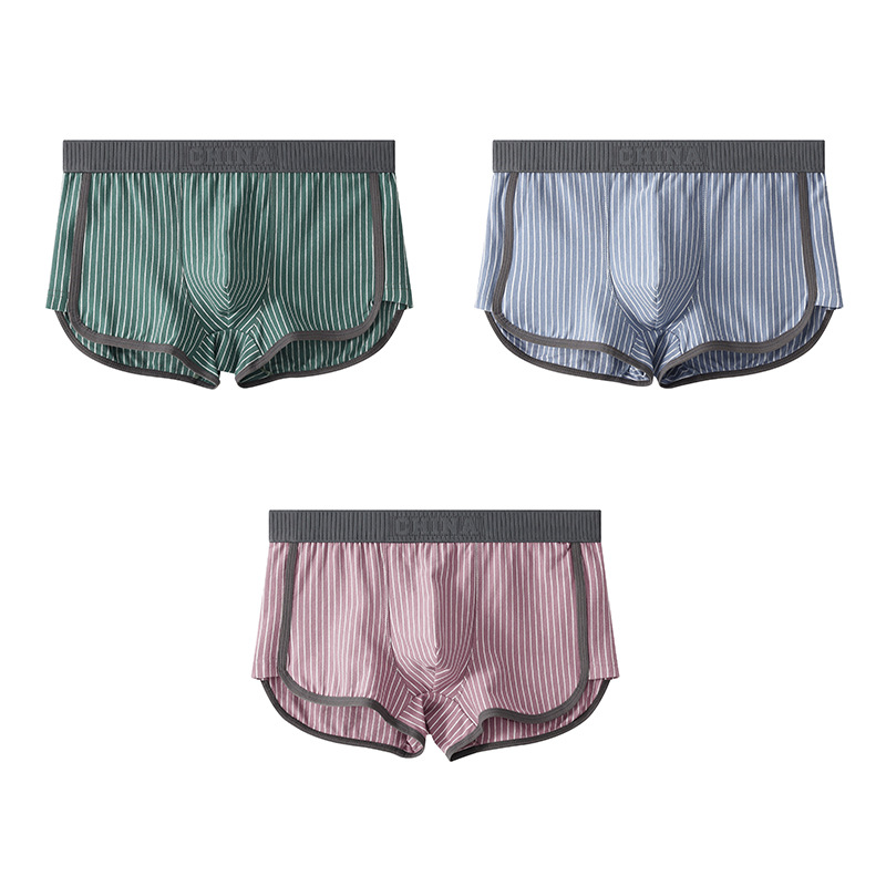 새로운 Huajielong 스트라이프 코튼 남성용 속옷 복서 통기성 어린 소년 트렌드 반바지