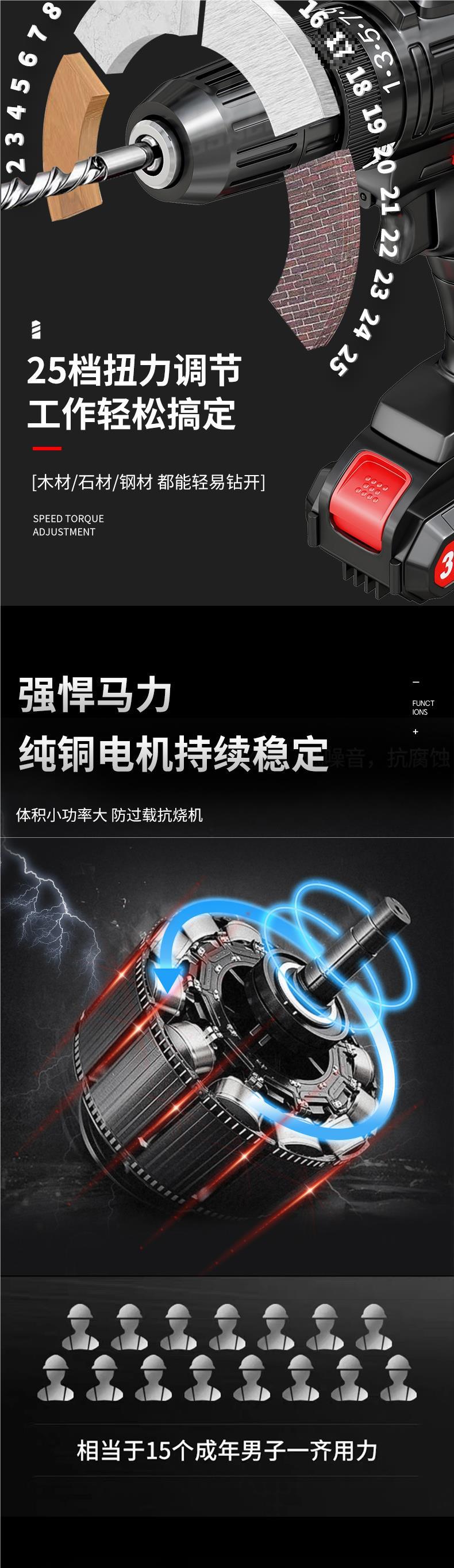 슈퍼 대형 전기 드릴 리튬 이중 속도 충전 드릴 충격 드릴 가정용 다기능 전기 드라이버 나사 벽스토어 가기