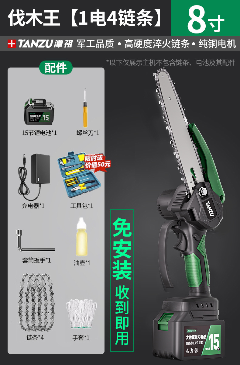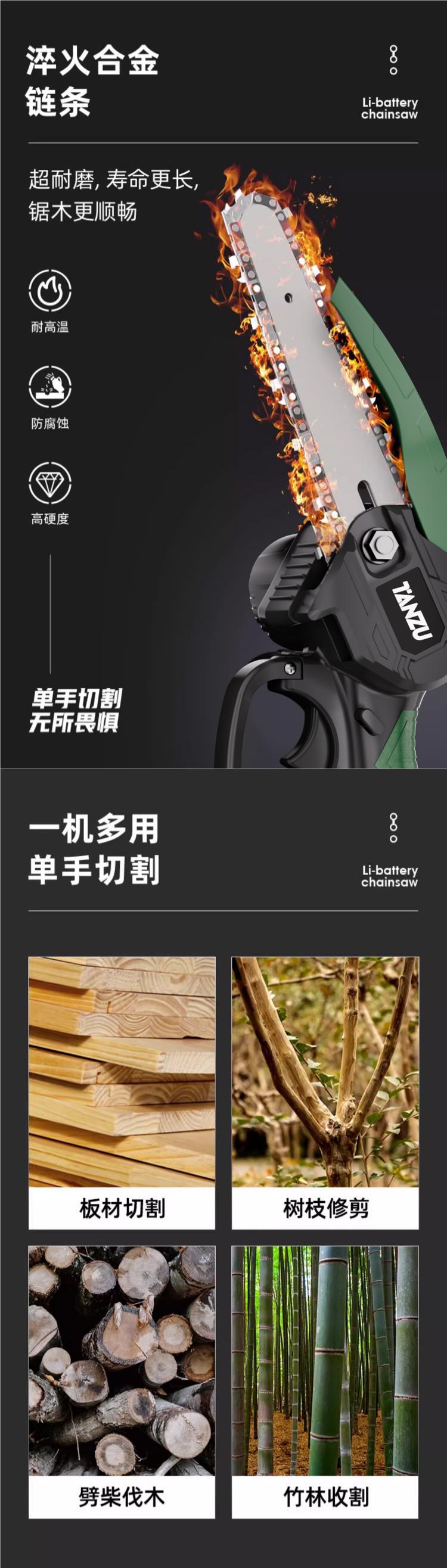 탄주 전기톱 가정용 소형 휴대용 충전식 리튬 전기톱 나무 절단용 전기톱 야외용 전기톱