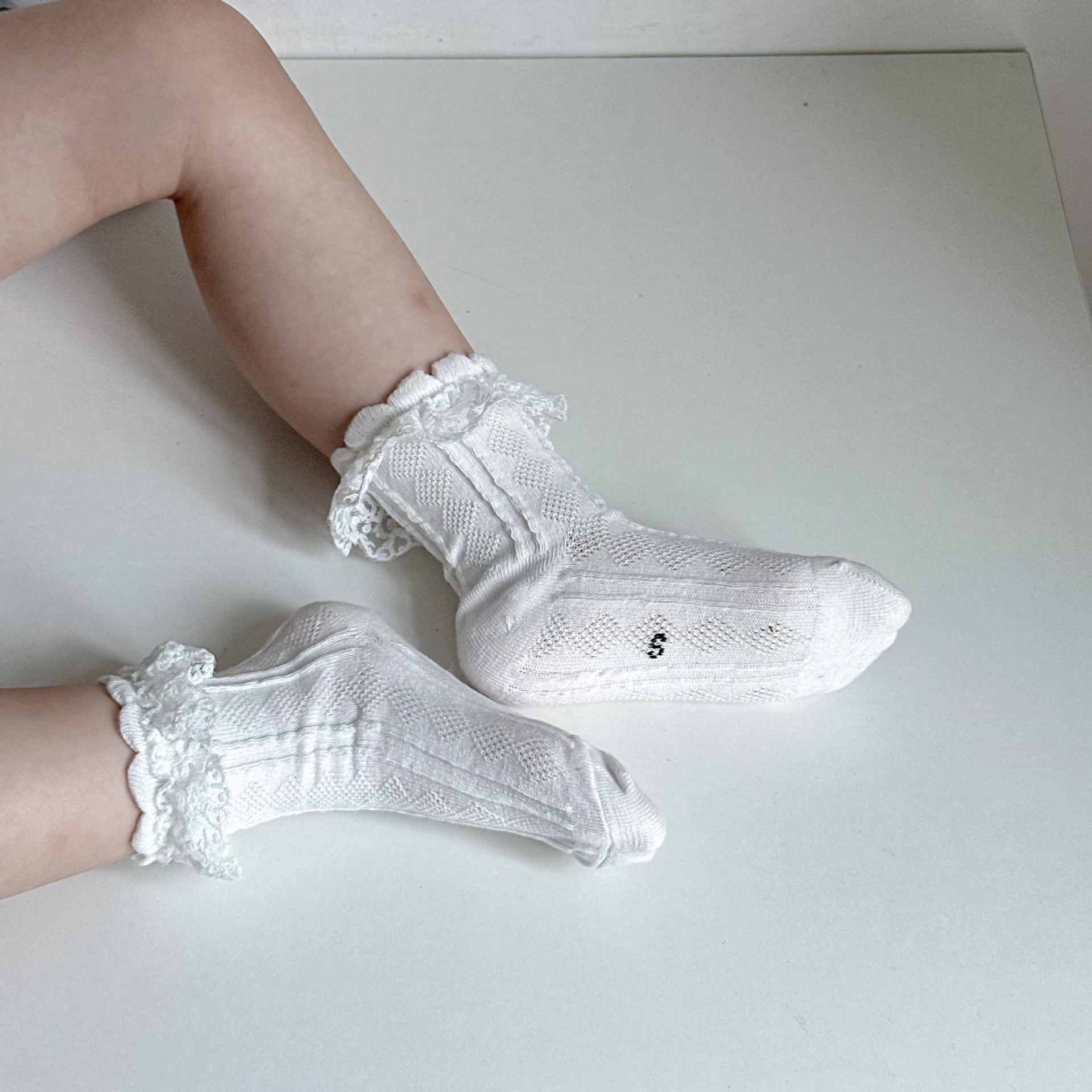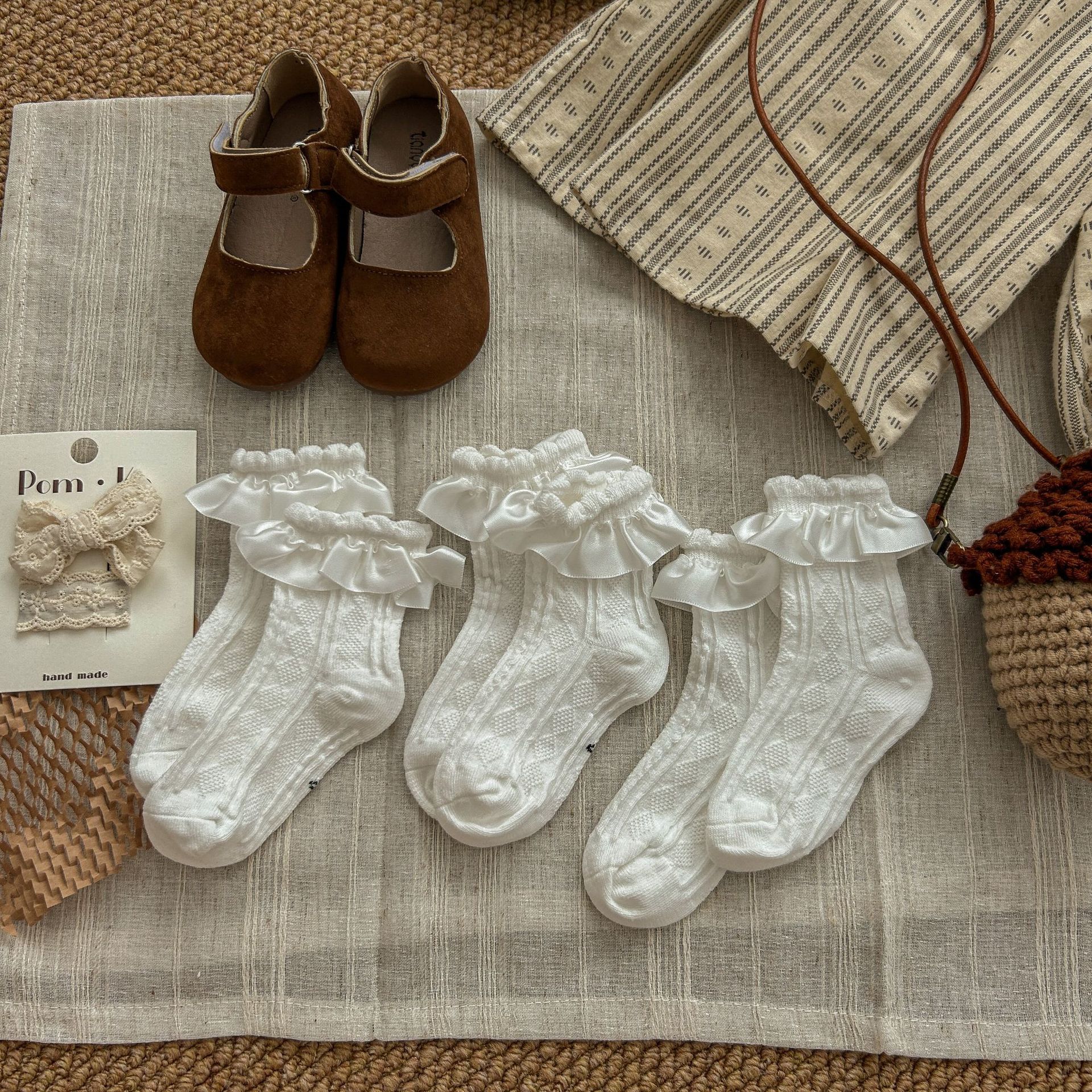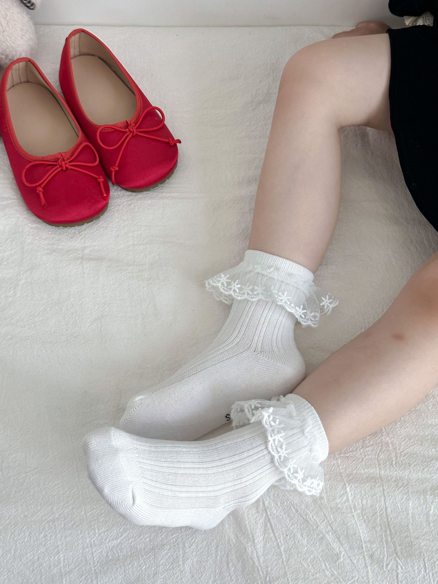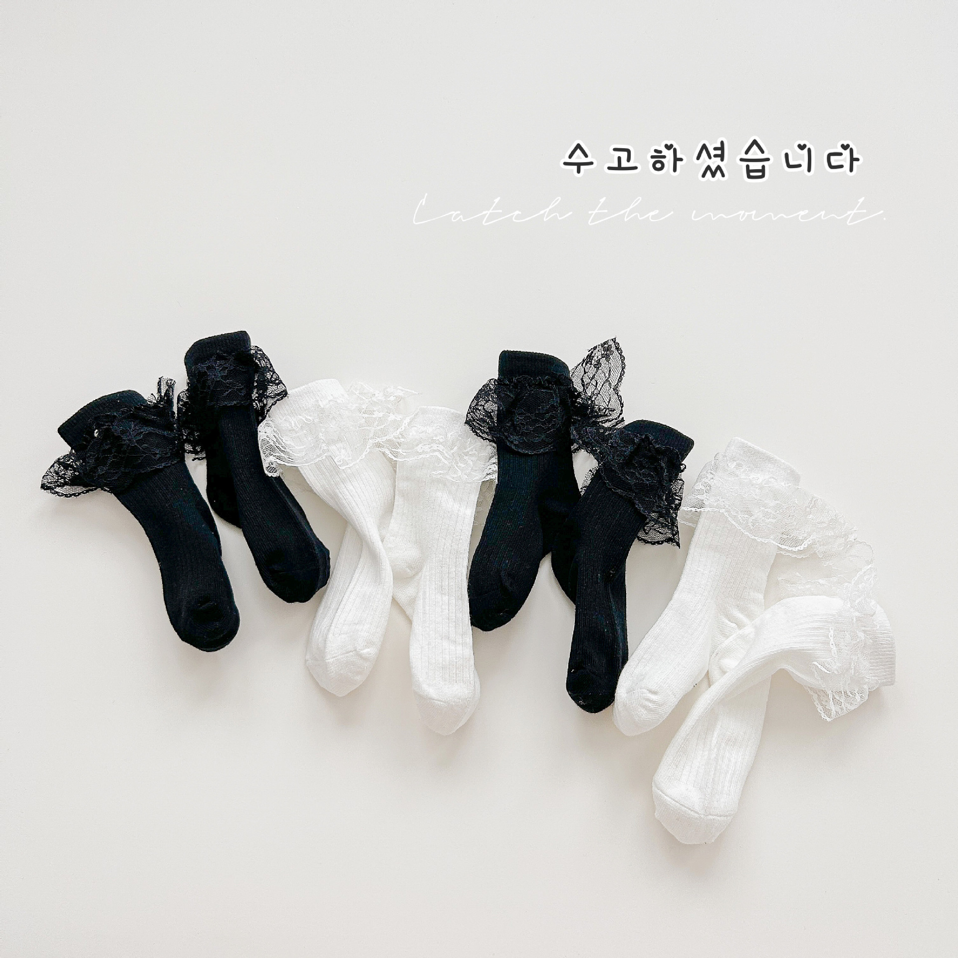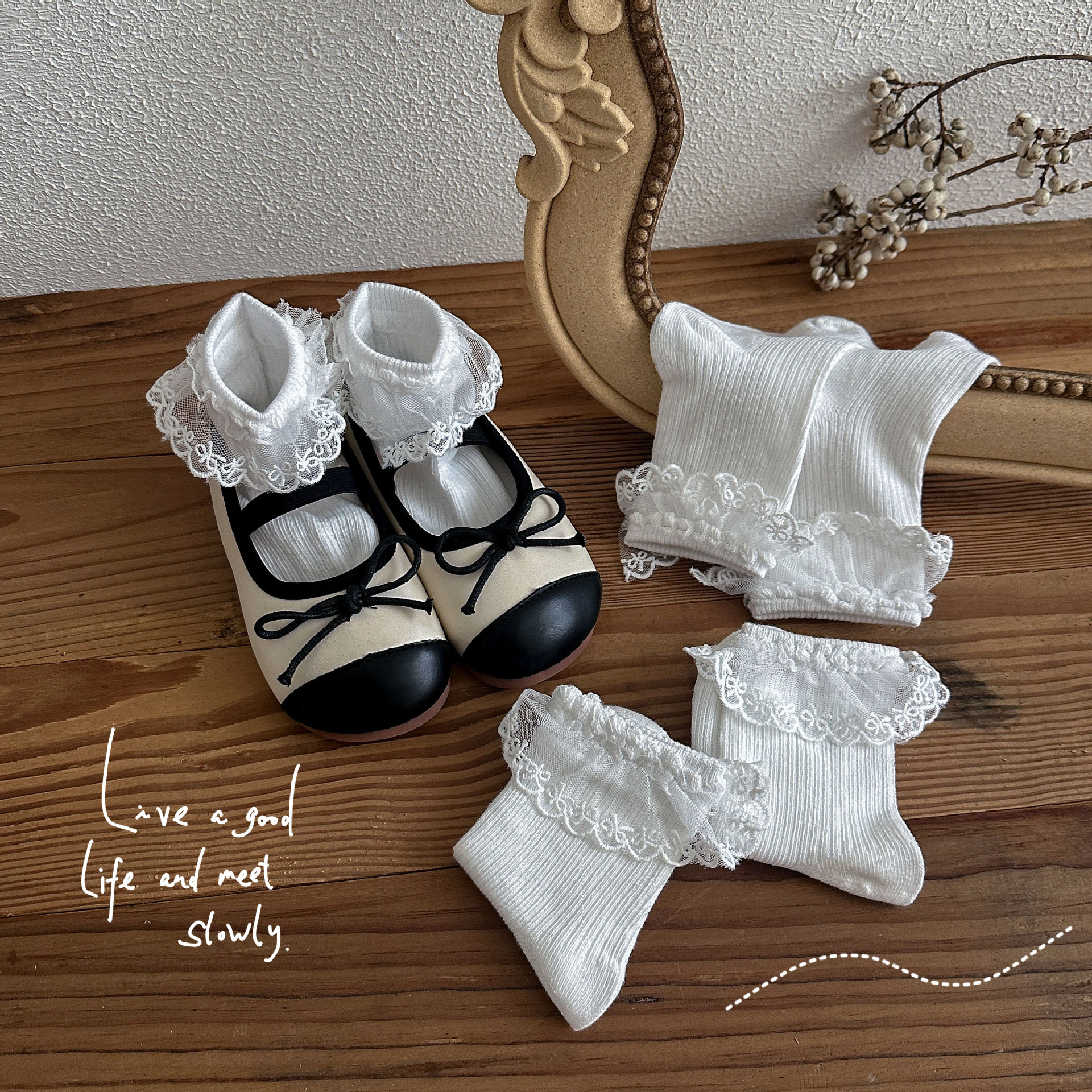 소녀 태양 어린이 양말 가을과 겨울 새로운 면 양말 레이스 작은 레이스 공주 양말 소녀 화이트 양말 스포츠 양말