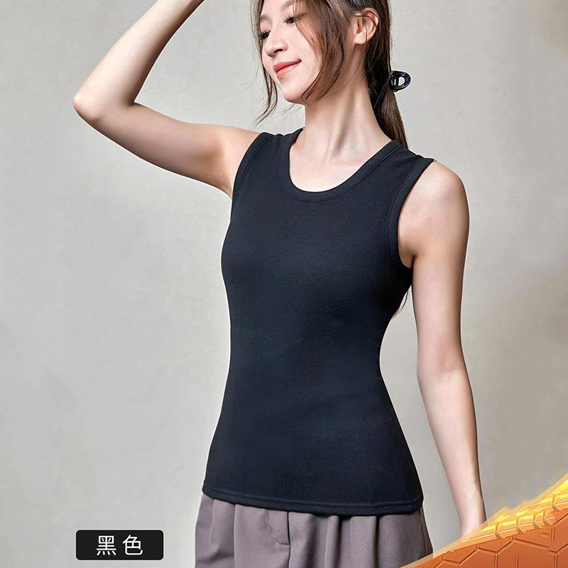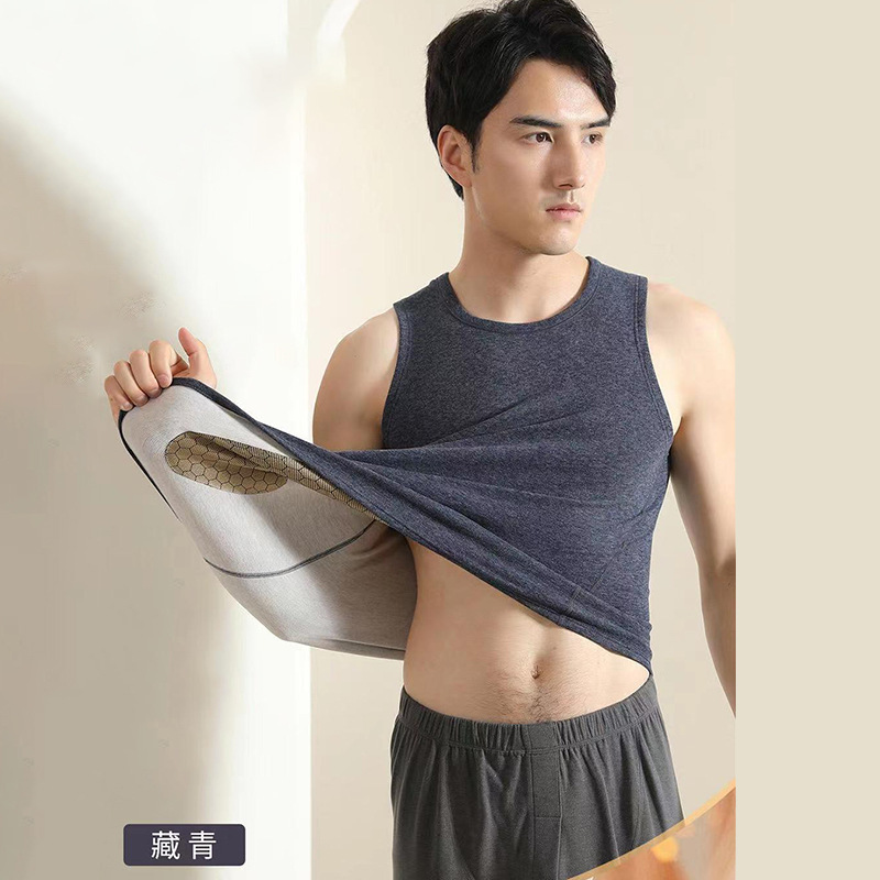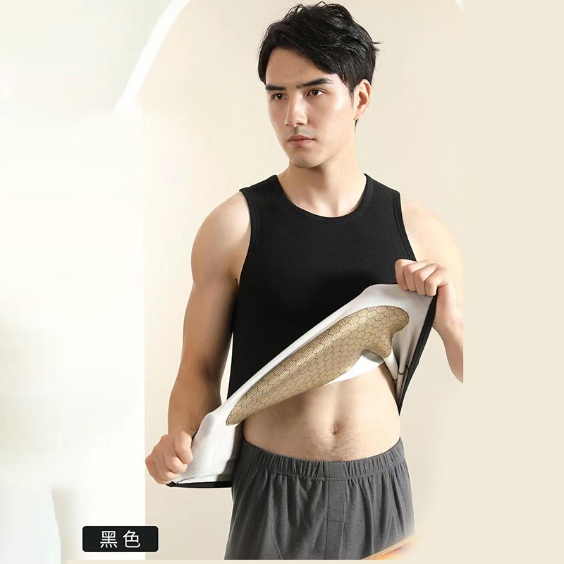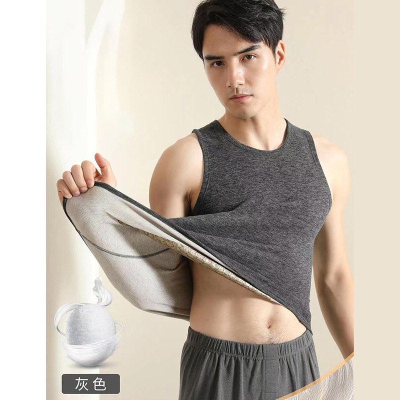 신상품 2025 가을 겨울 남성용 민소매 라운드넥 블랙 골드 패치 조끼 플리스 안감 폴리에스터 조끼 보온 속옷스토어 가기