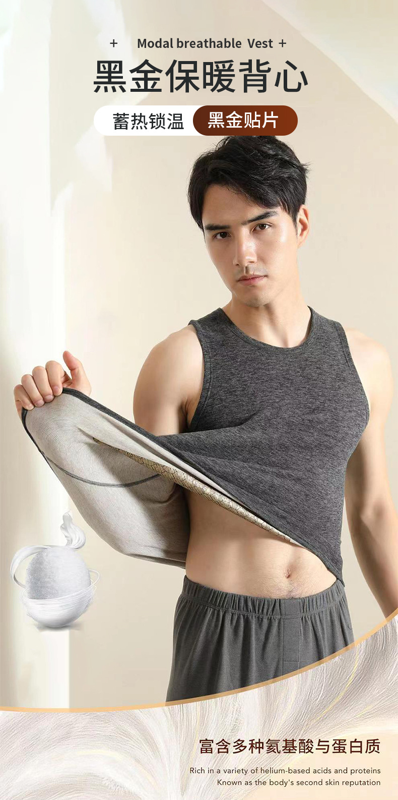 신상품 2025 가을 겨울 남성용 민소매 라운드넥 블랙 골드 패치 조끼 플리스 안감 폴리에스터 조끼 보온 속옷