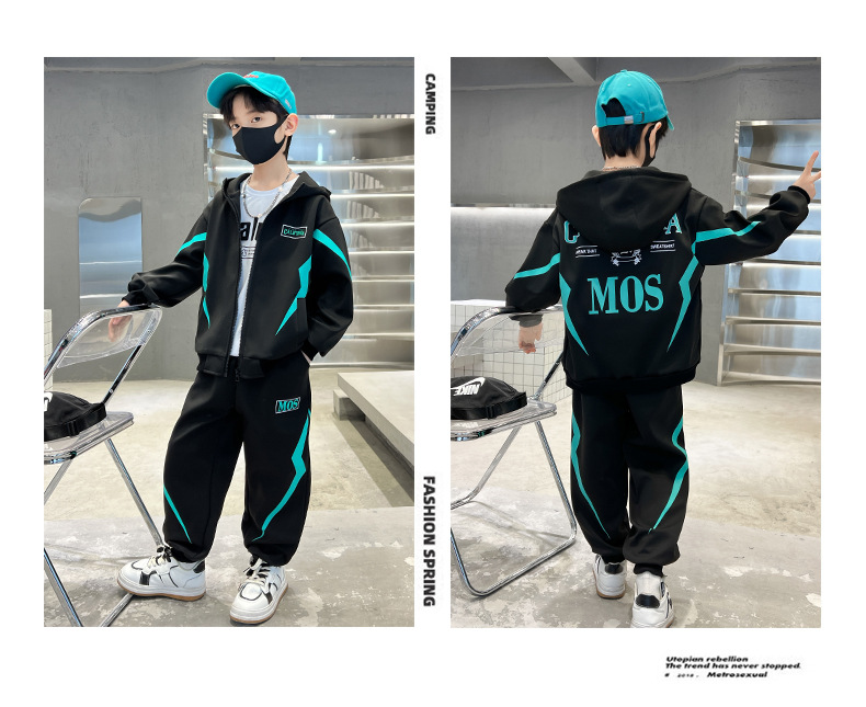 십대 뉴 스포츠 캐주얼 스웨터 세트 소년 후드 투피스 세트 빅 보이 지퍼 스웨터스토어 가기