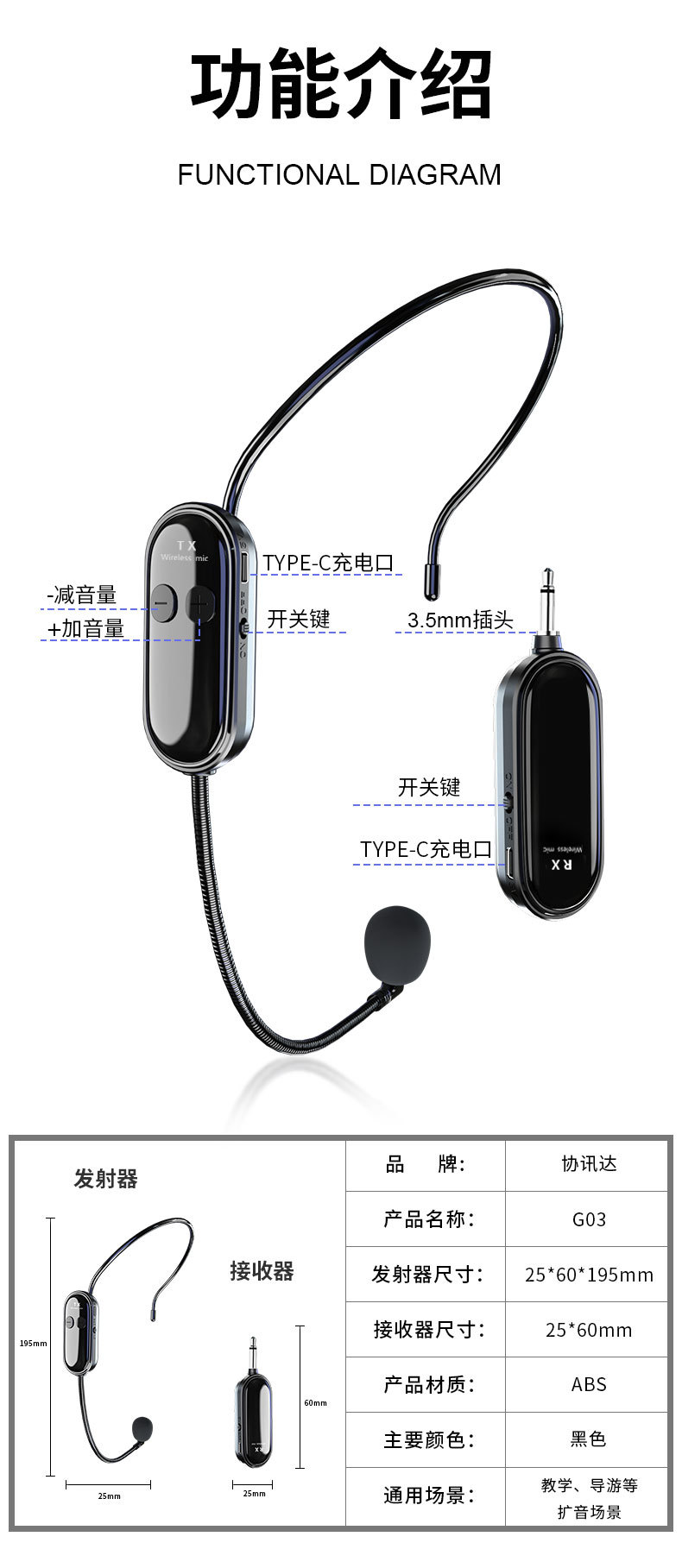 무선 헤드셋 마이크 교사는 투어 가이드 마이크 작은 꿀벌 증폭기 오디오 범용 헤드셋을 가르칩니다.