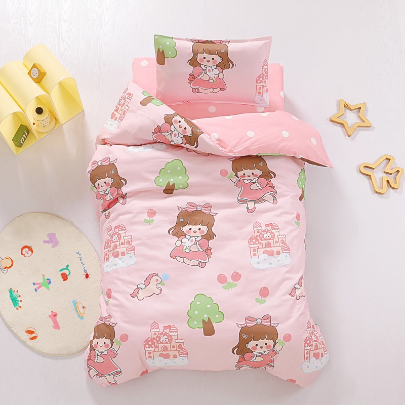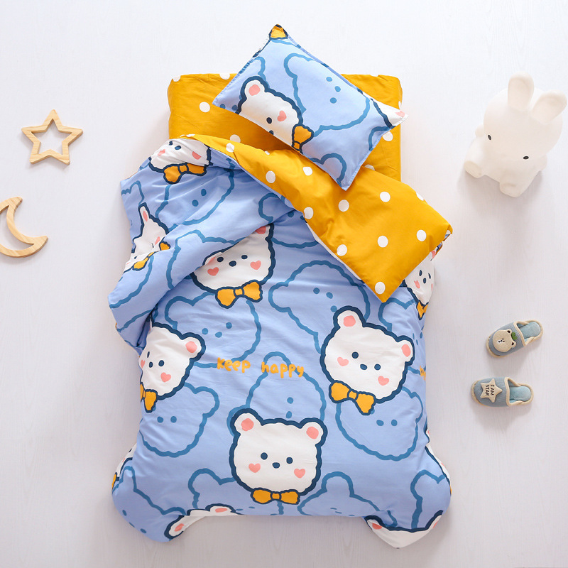 유치원 퀼트 3 조각 세트 아기 낮잠 퀼트 어린이 면 6 조각 세트 여름을위한 이동식 및 세척 가능한 만화 퀼트