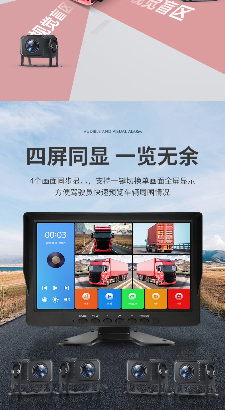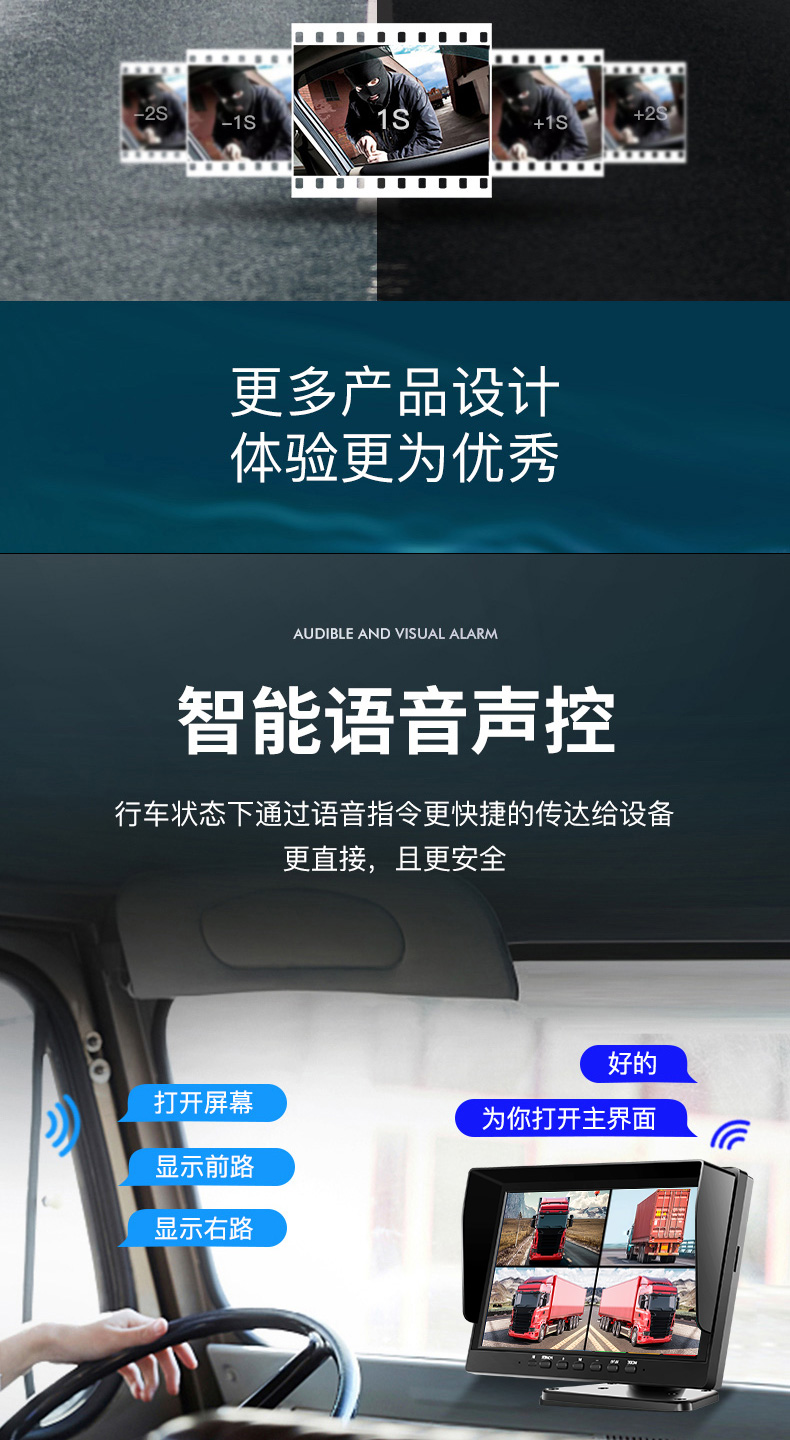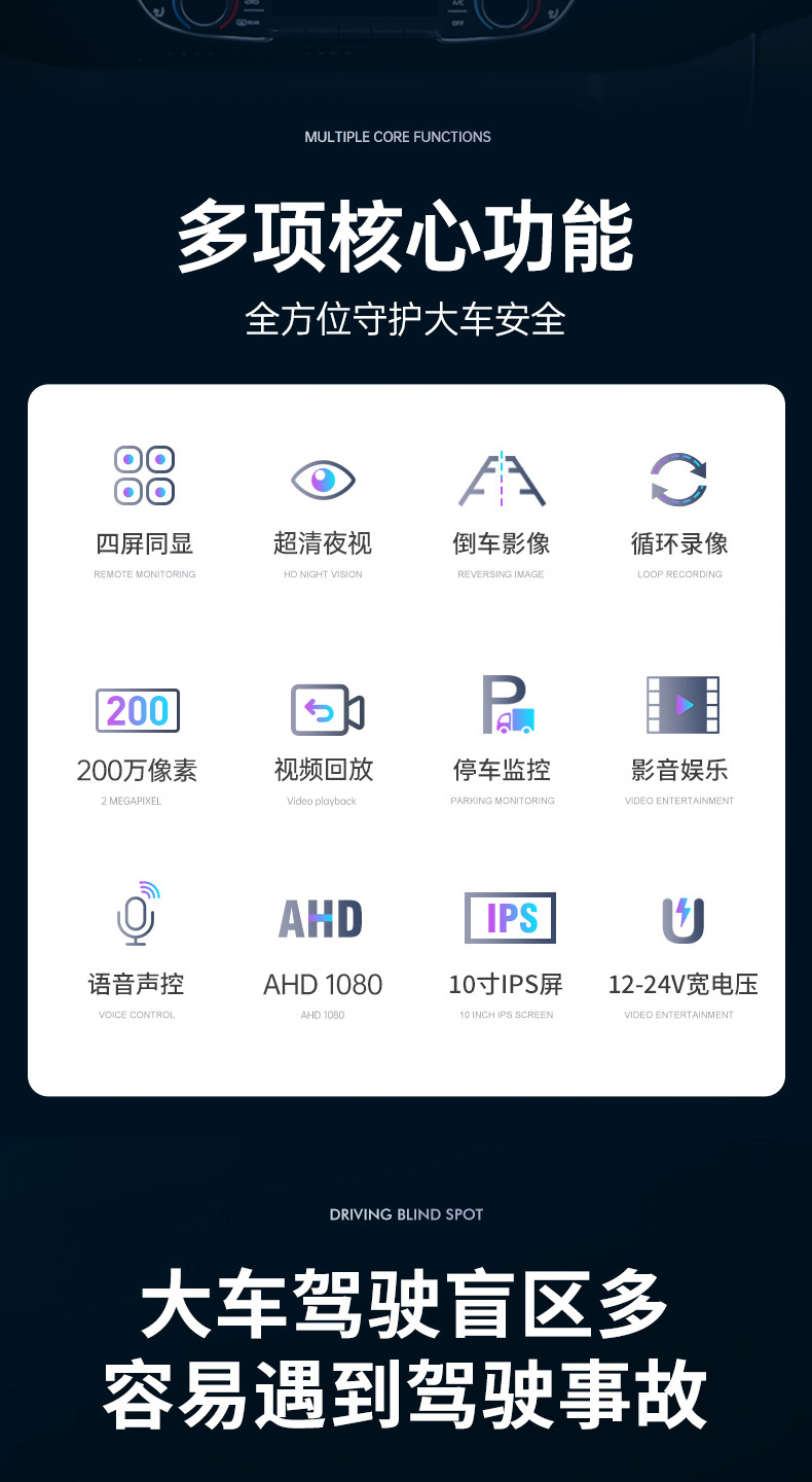 • 인기 판매 300k 개【4방향】 10inch 터치스크린 + 사각지대 경고 + 소리 및 빛 알람 + 64G
