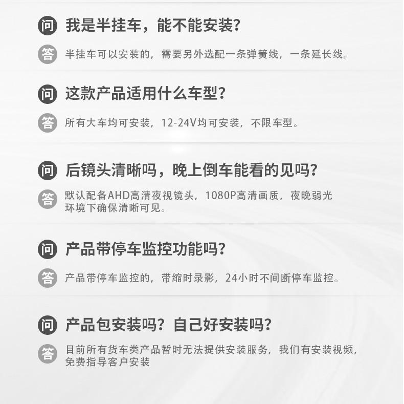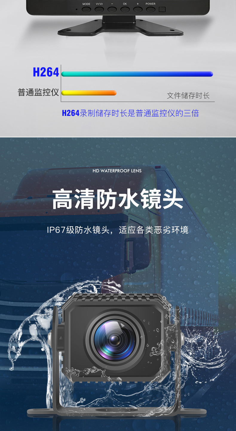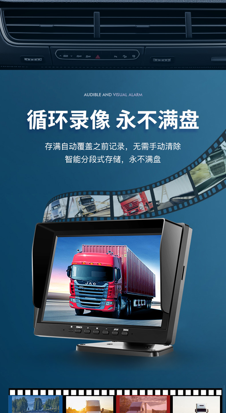 • 트레일러 [2방향] 7inch 터치스크린 + 사각지대 경고 + 소리 및 빛 알람 + 64G