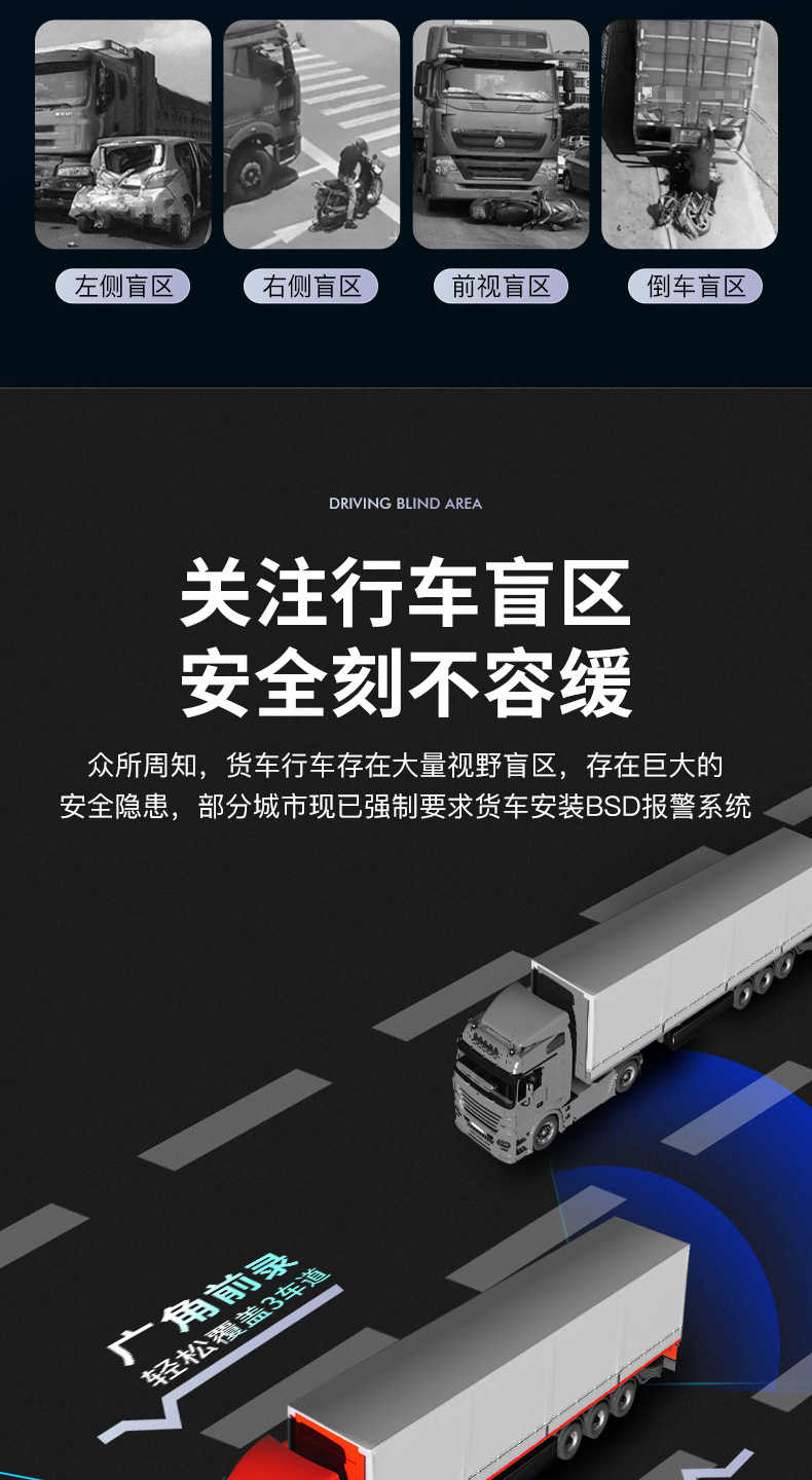 • 트레일러 [5방향] 10inch 터치스크린 + 사각지대 경고 + 소리 및 빛 알람 + 64G