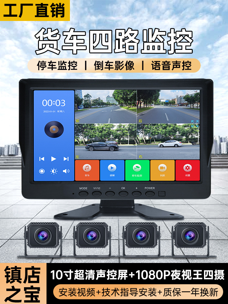 트럭 운전 레코더 4 방향 모니터링 24v HD 야간 시력 반전 이미지 올인원 수확기 12v 휘파람 축하스토어 가기