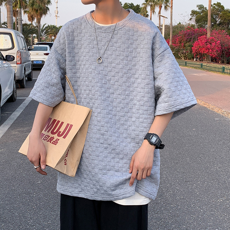 홍콩 스타일 티셔츠 남자 반팔 2024 새로운 도착 올 매치 반소매 와플 의류 Ins 인기 브랜드 느슨한 반소매 티셔츠스토어 가기