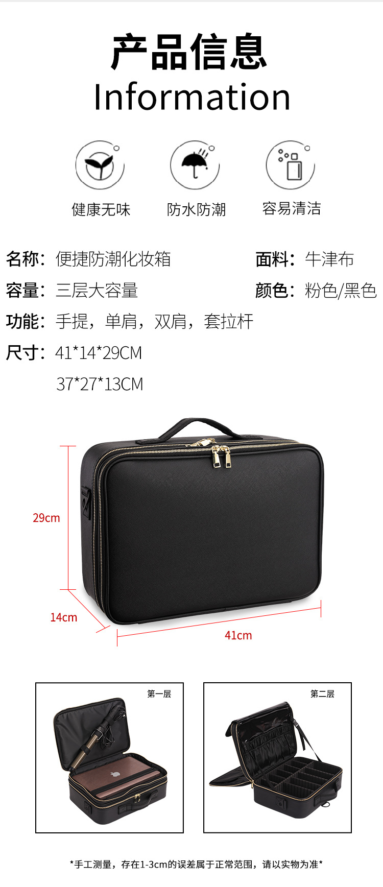 휴대용 대용량 핑크 가죽 화장품 가방 멀티 레이어 전문 네일 아트 패턴 속눈썹 패션 다기능 도구 상자스토어 가기