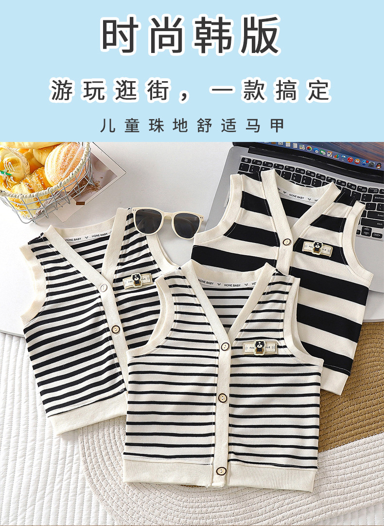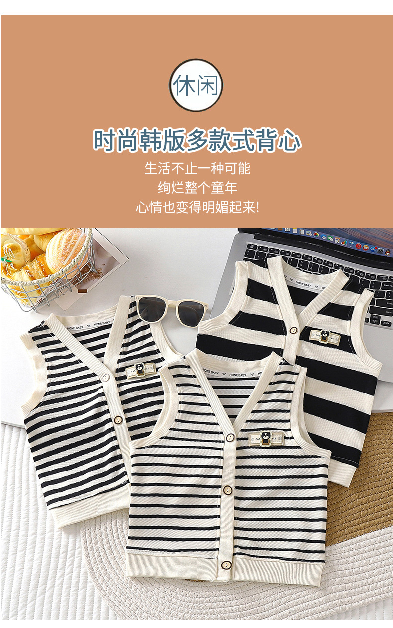 2025 가을 새로운 어린이 스트라이프 카디건 조끼 소년과 소녀를위한 다목적 민소매 니트 Shuma 클립 조끼스토어 가기