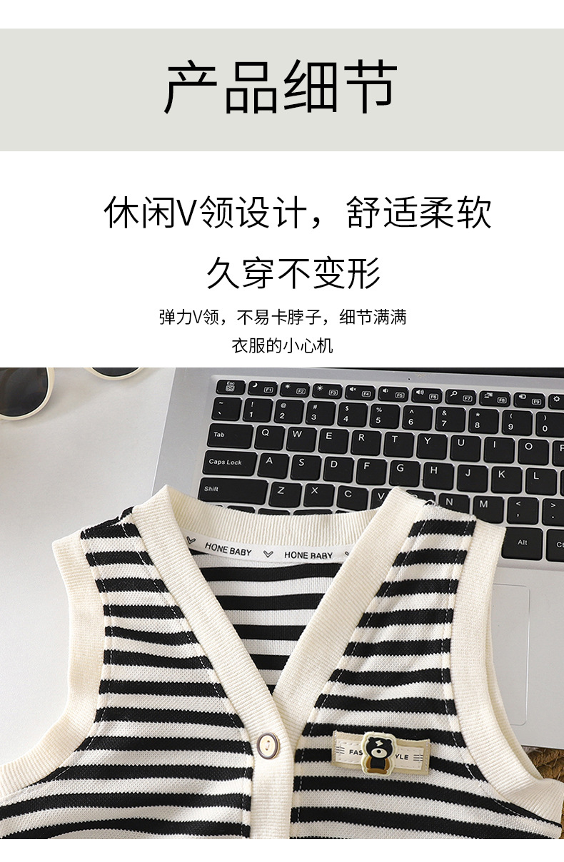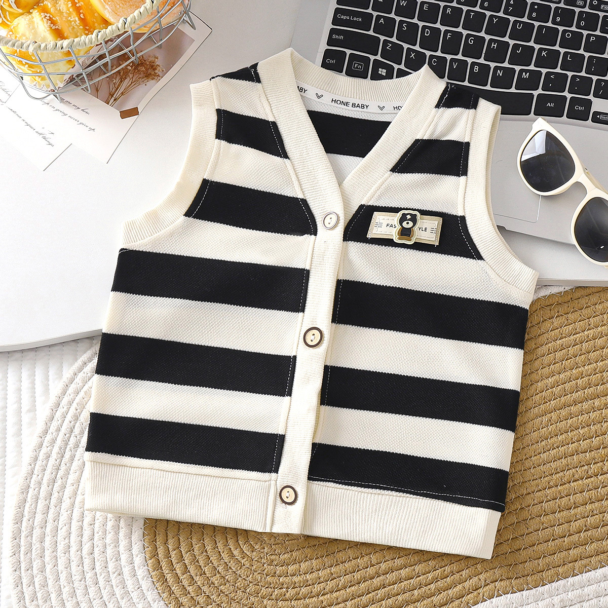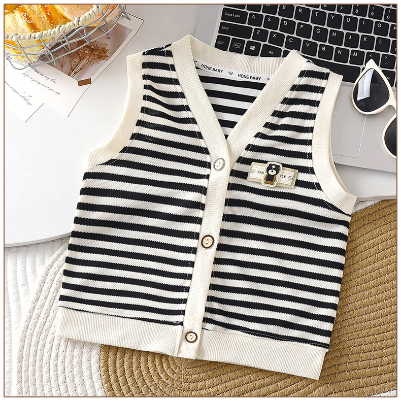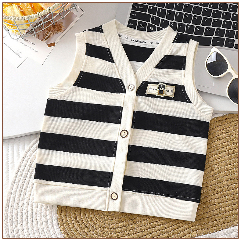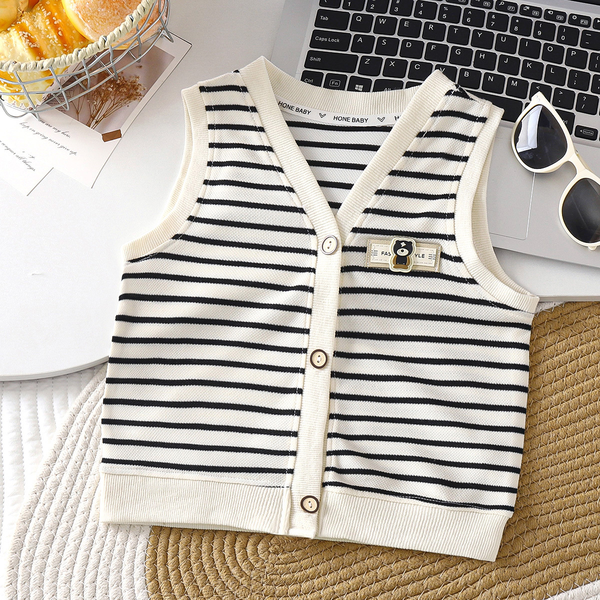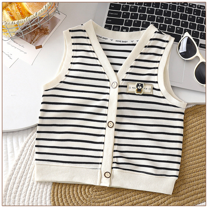2025 가을 새로운 어린이 스트라이프 카디건 조끼 소년과 소녀를위한 다목적 민소매 니트 Shuma 클립 조끼