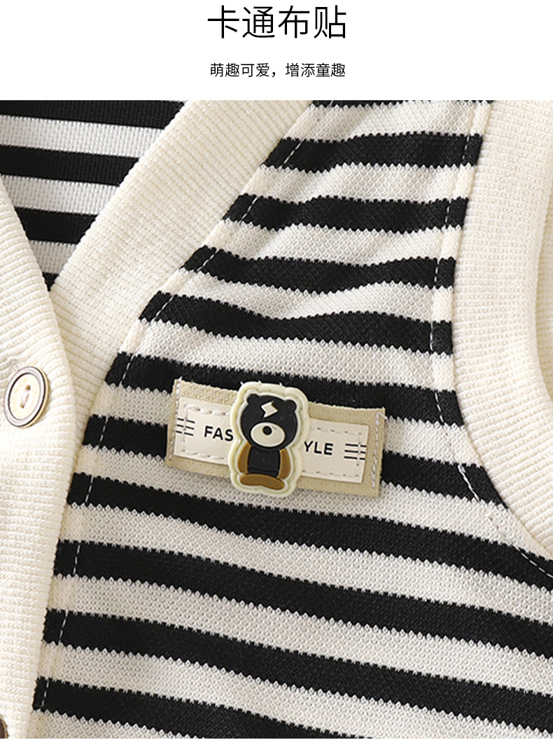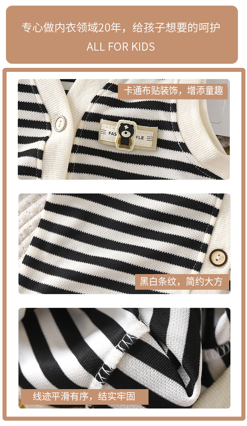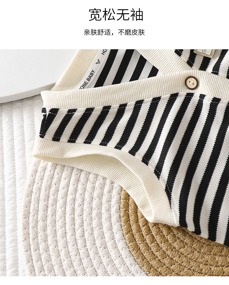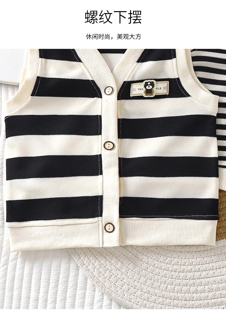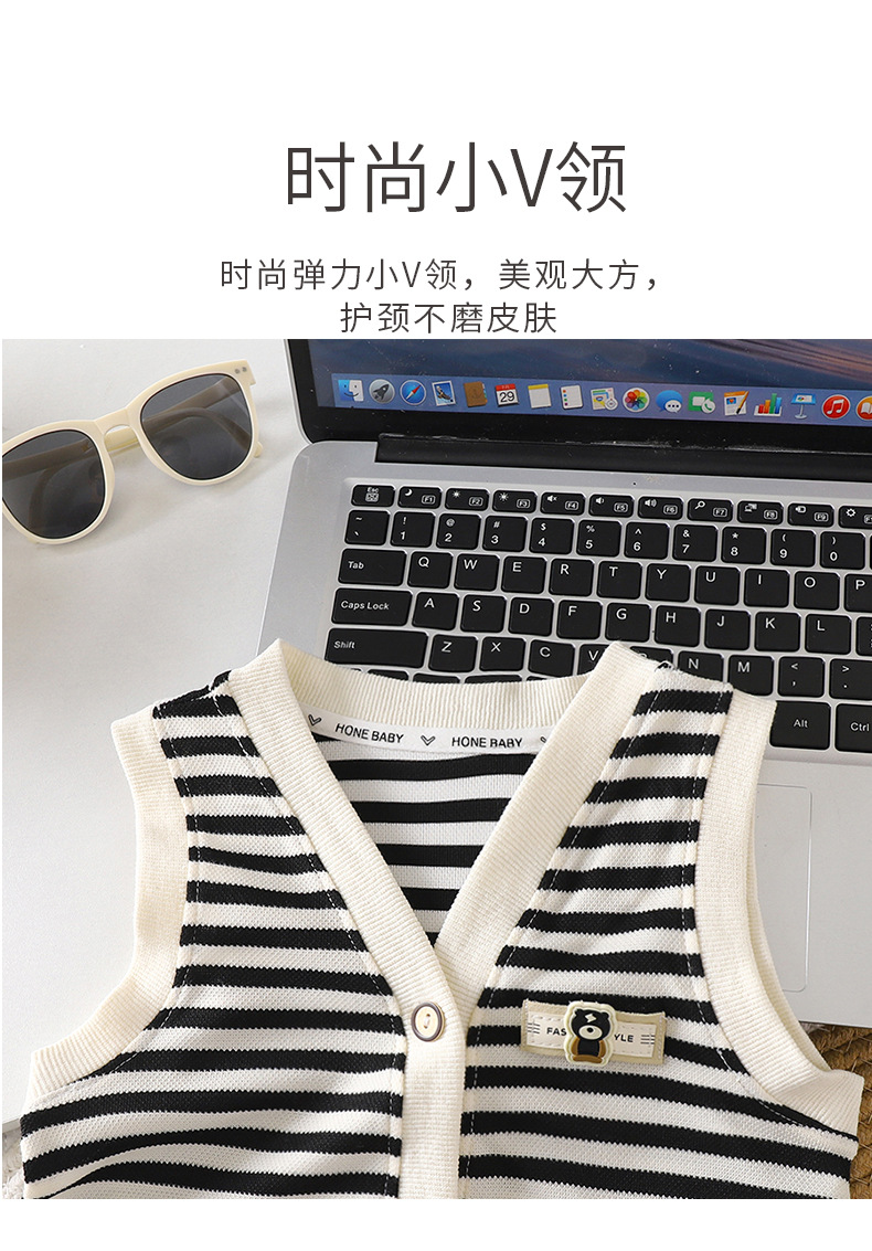 2025 가을 새로운 어린이 스트라이프 카디건 조끼 소년과 소녀를위한 다목적 민소매 니트 Shuma 클립 조끼