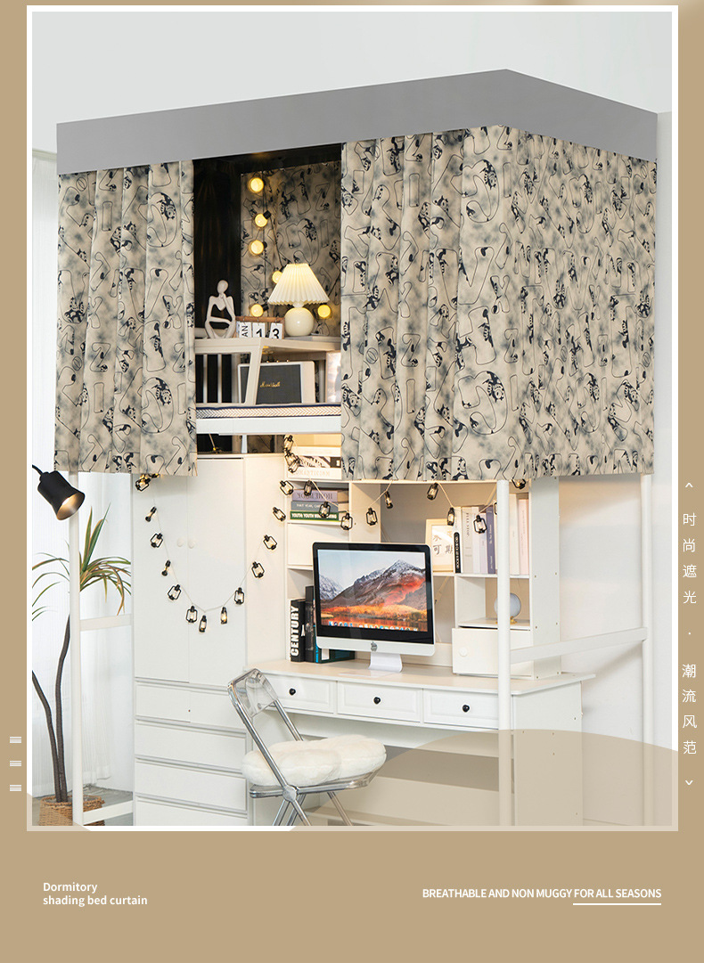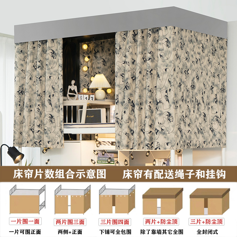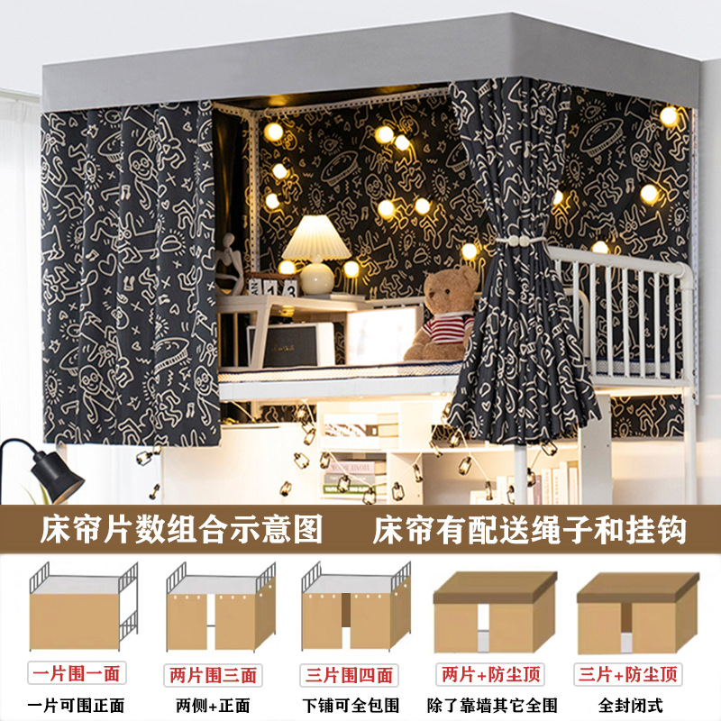 기숙사 침대 커튼 커튼 학생 상하 침대 물리적 두께 99% 강한 음영 커튼 기숙사 개인 정보 보호 커튼 커튼스토어 가기