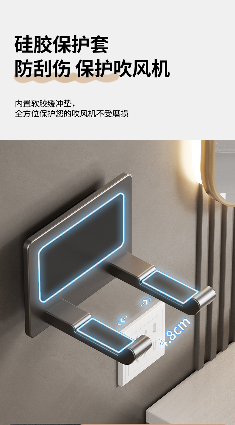 헤어 드라이어 랙 펀치 프리 화장실 헤어 드라이어 옷걸이 욕실 벽걸이 건조기 브래킷 보관 아티팩트