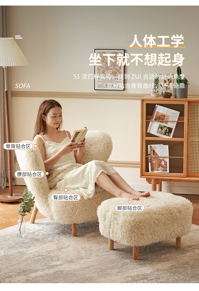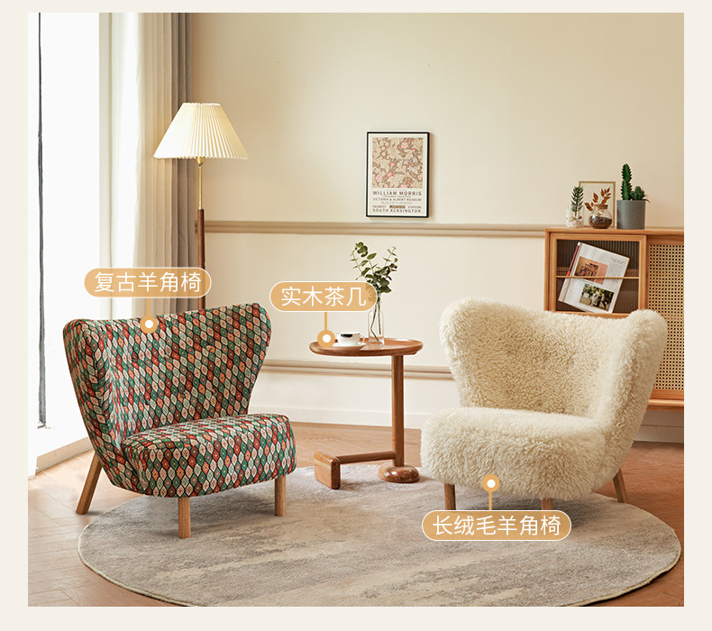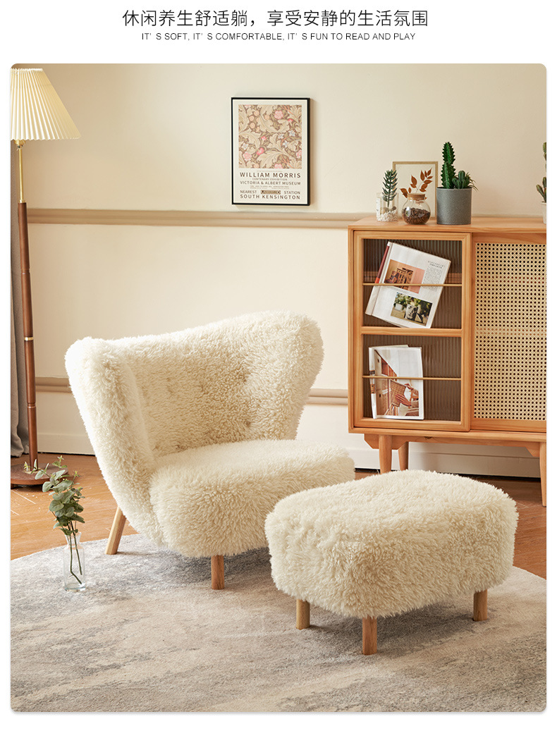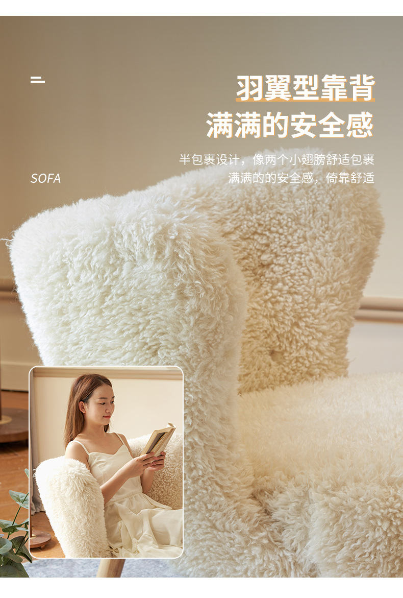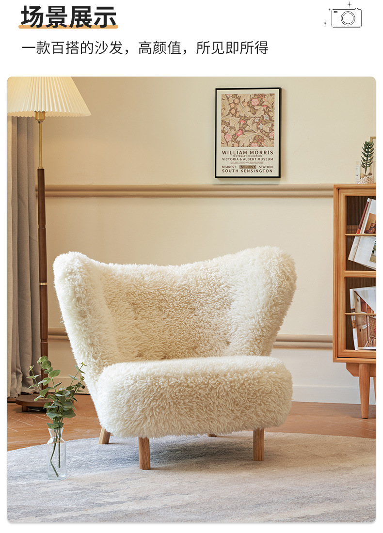 일본식 양고기 양모 싱글 소파 인터넷 유명한 빛 럭셔리 홈스테이 레트로 목가적 스타일 미국 봉제 게으른 소파 의자스토어 가기