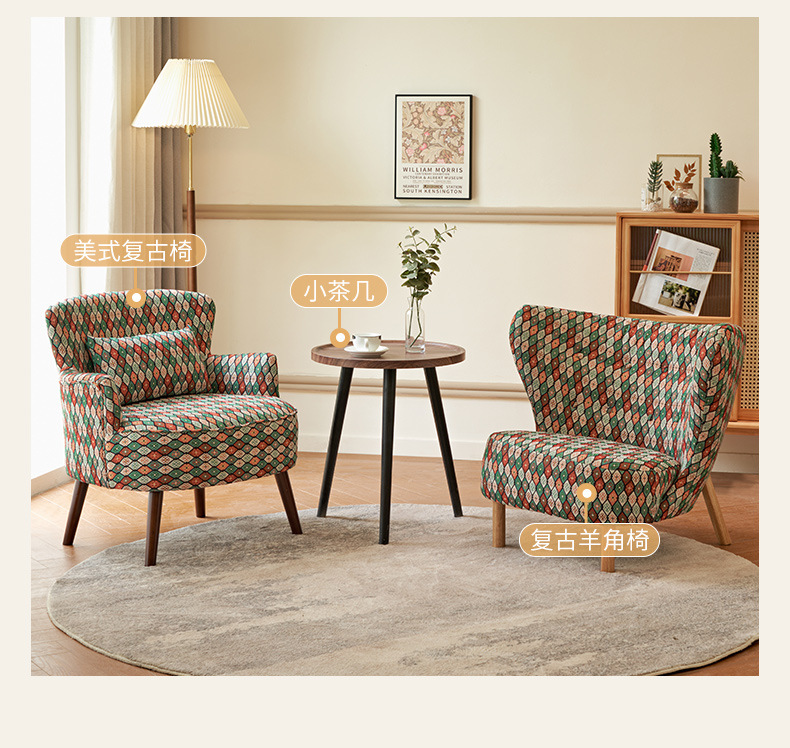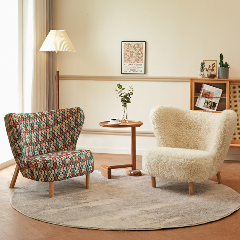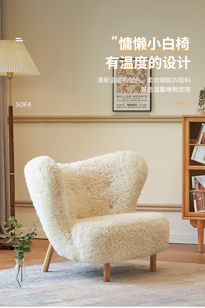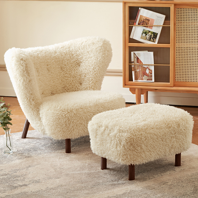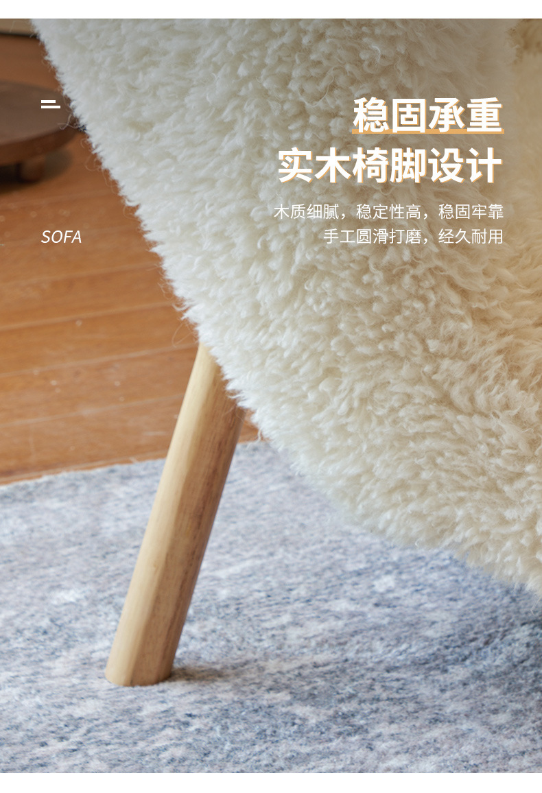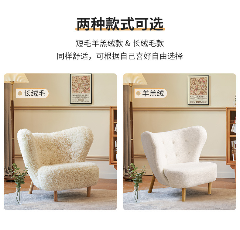 일본식 양고기 양모 싱글 소파 인터넷 유명한 빛 럭셔리 홈스테이 레트로 목가적 스타일 미국 봉제 게으른 소파 의자스토어 가기